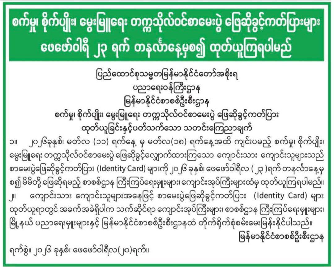 နေပြည်တော် ၂၀၂၆ ဖေဖော်ဝါရီ ၂၆