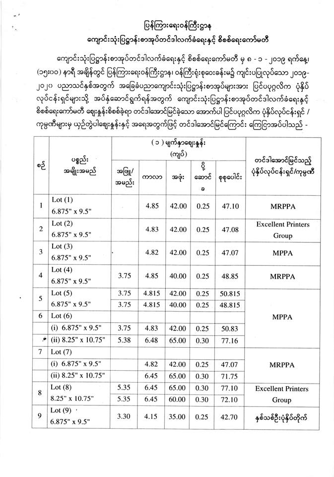 တင်ဒါအောင်မြင်ကြောင်း ကြေညာခြင်း ပြန်ကြားရေးဝန်ကြီးဌာနကုန်ကြမ်းပစ္စည်းများ ဝယ်ယူရေးနှင့် စိစစ်ရေးကော်မတီType: တင်ဒါကြေညာချက်များ