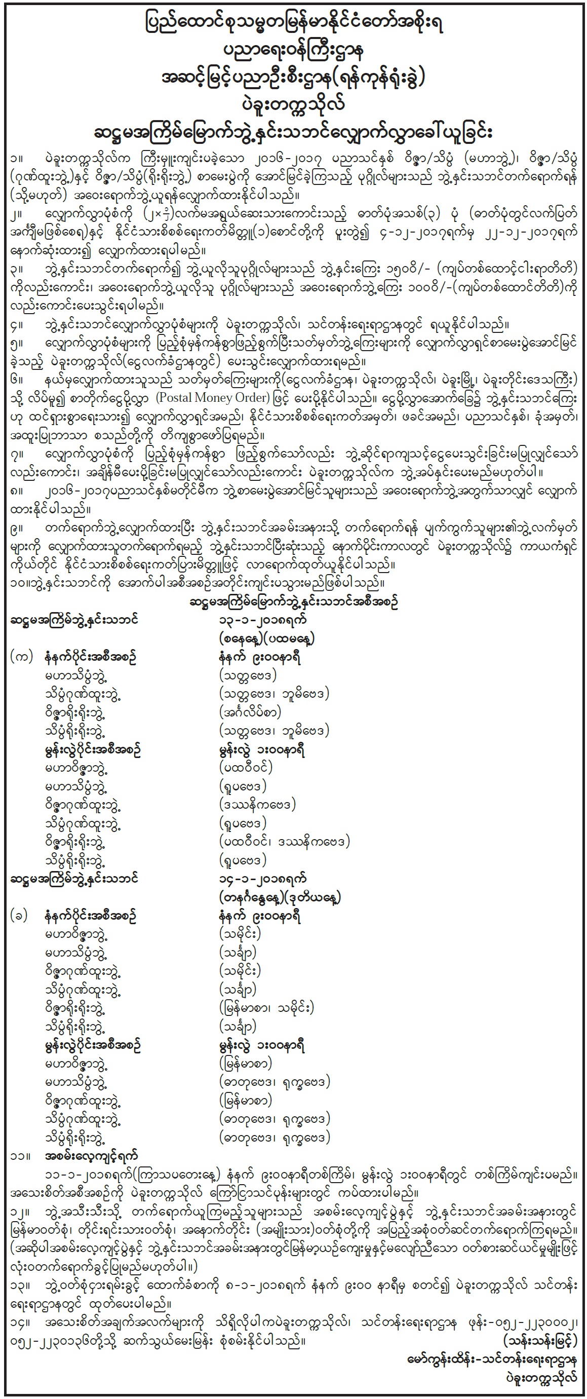 ပဲခူးတက္ကသိုလ် ဆဋ္ဌမအကြိမ်မြောက် ဘွဲ့နှင်းသဘင်လျှောက်လွှာခေါ်ယူခြင်း