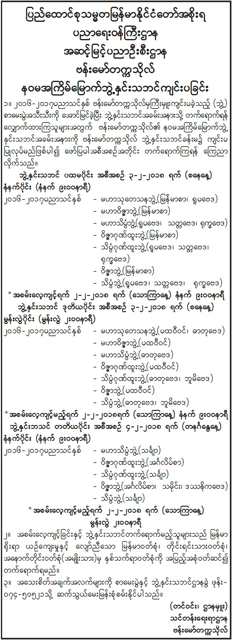 အဆင့်မြင့်ပညာကျောင်းများ ဆိုင်ရာ ညွှန်ကြားချက်များ