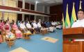 ပြည်ထောင်စုဝန်ကြီးက ပြောကြားရာတွင် အသစ်ခန့်ခပ်အပ်သည့် နည်းပြ သရုပ်ပြ ဆရာ ဆရာမသစ်လွင်များအား ဂုဏ်ယူဝမ်းမြောက်စွာ ကြိုဆိုပါကြောင်း၊ နိုင်ငံတော်ဝန်ကြီးချုပ်အနေဖြင့် ပညာရေးအဆင့်မြှင့်တင်ရေးဆောင်ရွက်ရန်၊ဆရာဆရာမများအရည်အသွေးမြှင့်တင်ရေးဆောင်ရွက် ရန်နှင့် နိုင်ငံတော်တွင်ပညာတတ်များပေါများအောင်ဆောင်ရွက်ရန် အမြဲလမ်းညွှန်လျက်ရှိပါ ကြောင်း၊ ပညာရေးဝန်ကြီးဌာနအနေဖြင့် အသစ်ခန့်အပ်ခံရသည့် ဆရာဆရာမများအား စီမံခန့်ခွဲရေး သင်တန်း၊သင်ပြနည်းအပါအဝင် ပညာရေးဘာသာရပ် သုံးဘာသာ မွမ်းမံသင်တန်းနှင့်သက်ဆိုင်ရာ ဘာသာရပ်မွမ်းမံသင်တန်းများကို တစ်လကြာဖွင့်လှစ်ကာ ဆရာဆရာမသစ်လွင်များအား အရည် အသွေးမြှင့်တင်ပေးလျှက်ရှိပါကြောင်း၊ ဆရာဆရာမများအနေဖြင့်ကျောင်းသားကျောင်းသူများအား သက်ဆိုင်ရာ ဘာသာရပ်ကို သင်ကြားပေးရုံသာမက ကျောင်းသားကျောင်းသူများကလည်း မဂ်လာ တရား၊ ဂါရဝတရားနှင့်အညီပြောဆိုဆက်ဆံတတ်ရေး မြန်မာ့ယဉ်ကျေးမှုအစဉ်လာများ ဆက်လက် ထိမ်းသိမ်းစေရေးအတွက်လည်း အလေးထားဆောင်ရွက်ပေးကြစေလိုပါကြောင်း၊ လူတိုင်း စည်းကမ်းလိုက်နာမှတိုးတက်မည်ဖြစ်၍ ကျောင်းသားကျောင်းသူများ စည်းကမ်းကောင်းမွန်အောင် လေ့ကျင့်ပေးစေလိုပါကြောင်း၊ ဆရာများသည်ထာဝရ ဆရာများဖြစ်သကဲ့သို့ ထာဝရစေတနာ့ ဝန်ထမ်းများလည်းဖြစ်သဖြင့် မိမိတို့ထက်အသိပညာ အတတ်ပညာ အတွေ့အကြုံ ပိုမိုရင့်ကျက်သော ဆရာကြီးဆရာမကြီးများအပေါ် ဂါရဝတရားရှေ့ထား၍ လေးစားစွာ ပြုမူဆက်ဆံကြရမည်ဖြစ်ပါ ကြောင်း၊ ဆရာများအနေဖြင့် မိမိကိုယ်ကို ထာဝရကျောင်းသားကြီးများအဖြစ်ခံယူ၍ အမြဲမပြတ် သင်ယူဆည်းပူးလေ့လာနေရမည်ဖြစ်ပါကြောင်း၊ ဆရာများကိုယ်တိုင် စံပြထူးချွန်ထက်မြက်နေမှသာ တပည့်များကိုလည်း ထူးချွန်ထက်မြက်အောင် ပြုစုပျိုးထောင်ပေးနိုင်မည်ဖြစ်ပါကြောင်း၊ သင်တန်း အချိန်ကာလတိုတောင်းသော်လည်း အခွင့်အရေးကိုရယူအသုံးချလျက် မိမိ၏အရည်အသွေးကို မြှင့်တင်ကြရမည်ဖြစ်ပါကြောင်း၊ ကြိုးစားသင်ယူ၍ မိမိကိုယ်ကို အရည်အသွေးမြှင့်တင်ဆောင်ရွက် ကြစေလိုပါကြောင်း၊ ဆရာသည် စာများများဖတ်ရန်လိုအပ်ပြီး စာကြည့်တိုက်၊အင်တာနက် စသည်များတွင် မိမိတို့ကိုယ်တိုင်လေ့လာပြီး တပည့်များကိုလည်း သင်ကြားလေ့ကျင့်ပေးစေလိုပါ ကြောင်း၊ မိမိတို့တပည့်များအား တစ်ချိန်တွင်မိမိတို့နေရာ၌လက်ဆင့်ကမ်းပေးခဲ့ကြရမည်ဖြစ်၍ ယခုကတည်းက အရည်အသွေးရှိအောင် သင်ကြားပေးကြစေလိုပါကြောင်း၊ လူငယ်များကို ရိုးသား ကြိုးစားပြီး လောကကိုအလှဆင်နိုင်သူများဖြစ်အောင် ပျိုးထောင်ပေးစေလိုပါကြောင်း၊ မည်သည့် ခွဲခြားမှုမျှ မရှိစေဘဲ သင်ယူမှုအခွင့်အလမ်းတပြေးညီရရှိအောင် ဆောင်ရွက်ပေးစေလိုပါကြော