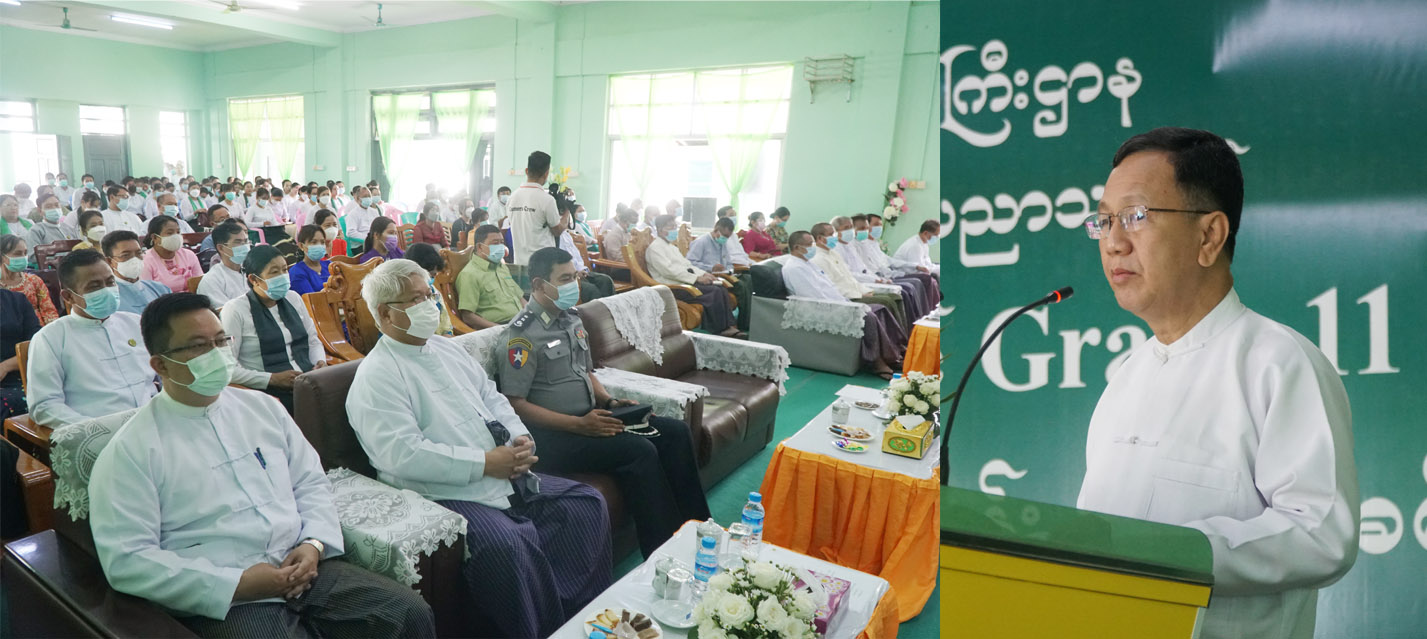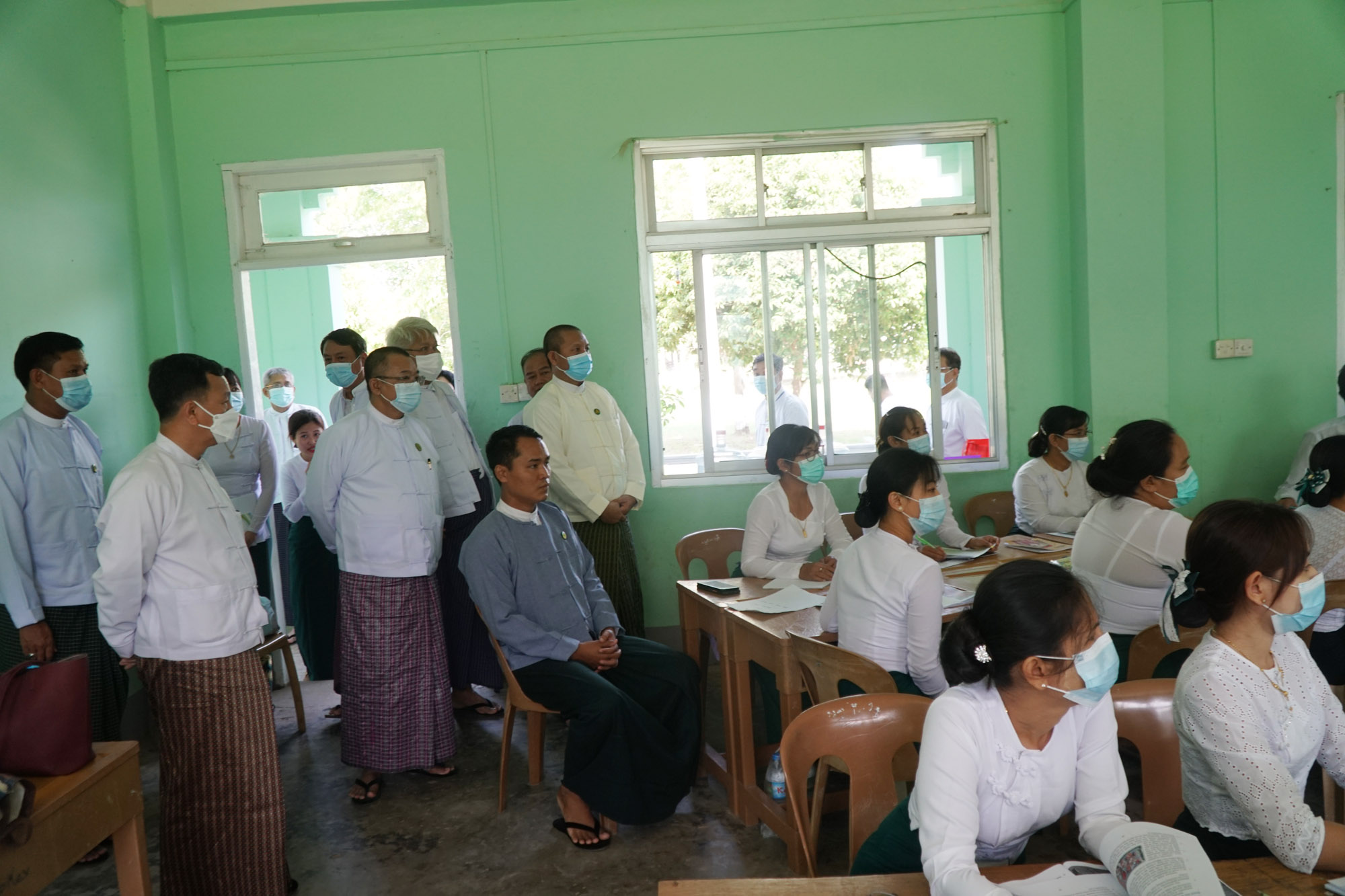 ယနေ့ဖွင့်လှစ်သည့် အခြေခံပညာအထက်တန်းဆင့် Grade-11 သင်ရိုးသစ် ဗဟိုအဆင့် နည်းပြသင်တန်းကို မေ ၆ရက်မှ ၈ ရက်အထိ (၃) ရက်ကြာဖွင့်လှစ်၍ မြန်မာစာ၊ အင်္ဂလိပ်စာ၊ သင်္ချာ၊ ဓာတုဗေဒ၊ ရူပဗေဒ၊ ဘောဂဗေဒ၊ ပထဝီဝင်၊ သမိုင်းဘာသာရပ်များနှင့် စာရိတ္တနှင့် ပြည်သူ့နီတိ+ ကာယဘာသာရပ်များကို သင်တန်းနည်းပြ ဆရာ ဆရာမများက သင်ကြားပို့ချသွားမည်ဖြစ်ပြီး တိုင်းဒေသကြီး/ပြည်နယ်များမှ သင်တန်းသား သင်တန်းသူ ဆရာ ဆရာမ စုစုပေါင်း (၅၉၈)ဦး တက်ရောက်သင်ကြား သင်ယူကြကြောင်းသိရသည်။