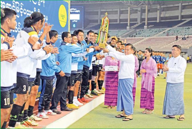 ထို့နောက် နိုင်ငံတော်စီမံအုပ်ချုပ်ရေးကောင်စီဝင် မန်းငြိမ်းမောင်က တတိယဆုရရှိသော မော်လမြိုင်ဇုန်အသင်း၊ နိုင်ငံတော်စီမံအုပ်ချုပ်ရေးကောင်စီဝင် ပိုးရယ်အောင်သိန်းက ဒုတိယဆုရရှိသော ပုသိမ်ဇုန်အသင်း၊ နိုင်ငံတော်စီမံအုပ်ချုပ်ရေးကောင်စီဝင် ဒုတိယဗိုလ်ချုပ်ကြီးရာပြည့်က ပထမဆုရရှိသည့် ရန်ကုန်ဇုန်အသင်းတို့ကို တစ်ဦးချင်းဆုတံဆိပ်နှင့် ဂုဏ်ပြုဆုငွေများ ပေးအပ်ချီးမြှင့်ကြသည်။