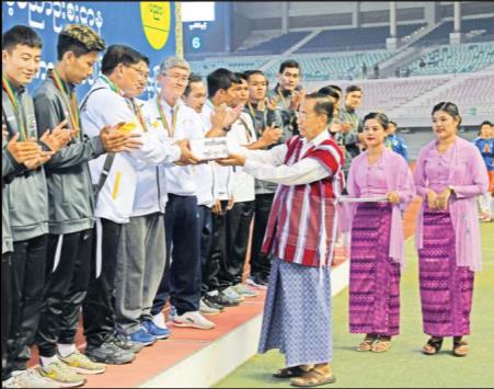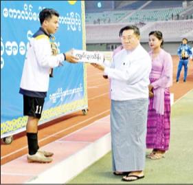 ယင်းနောက် နိုင်ငံတော်စီမံအုပ်ချုပ်ရေးကောင်စီ ဒုတိယဥက္ကဋ္ဌ ဒုတိယဝန်ကြီးချုပ် ဒုတိယဗိုလ်ချုပ်မှူးကြီးစိုးဝင်းက ပထမဆုရရှိသည့် ရန်ကုန်ဇုန်အသင်းကို ငွေသားဆုနှင့် တံခွန်စိုက် ဆုဖလားကို ပေးအပ်ချီးမြှင့်သည်။ ဆုချီးမြှင့်ပွဲအပြီးတွင် နိုင်ငံတော်စီမံအုပ်ချုပ်ရေး ကောင်စီဒုတိယဥက္ကဋ္ဌ ဒုတိယဝန်ကြီးချုပ်နှင့် အခမ်းအနားတက်ရောက်လာကြသူများသည် အားကစားသမားများကို ရင်းရင်းနှီးနှီး နှုတ်ဆက်ကြသည်။