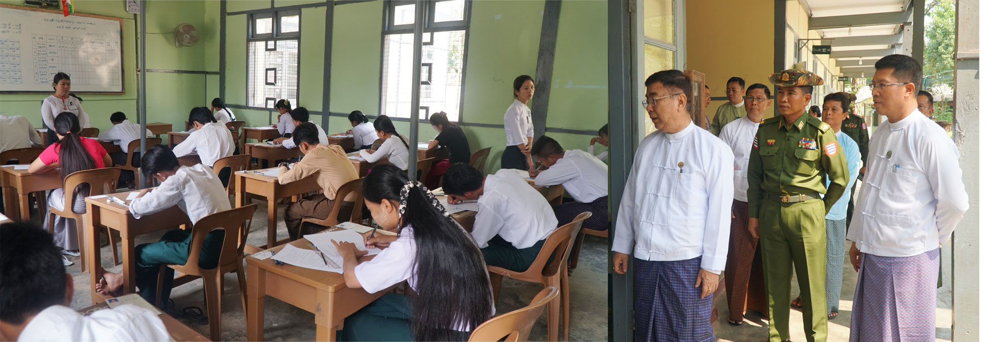 ဆက်လက်၍ ပြည်ထောင်စုဝန်ကြီးသည် ပုသိမ်မြို့ရှိ အမှတ်(၁၀)အခြေခံပညာ အထက်တန်းကျောင်း၊ အမှတ်(၅)အခြေခံပညာ အထက်တန်းကျောင်း၊ အမှတ်(၉)အခြေခံပညာ အထက်တန်းကျောင်း၊ အမှတ်(၈)အခြေခံပညာ အထက်တန်းကျောင်း၊ အမှတ်(၉) အခြေခံပညာ အလယ်တန်းကျောင်း (ယိုးဒယားကုန်း)၊ အမှတ်(၁၁)အခြေခံပညာ အထက်တန်းကျောင်း(မြို့မ)သို့ သွားရောက်၍ ကျောင်းသား ကျောင်းသူများ တက္ကသိုလ်ဝင်စာမေးပွဲ အေးချမ်းစွာ ဖြေဆိုနေမှုများကို သွားရောက်ကြည့်ရှု အားပေးသည်။