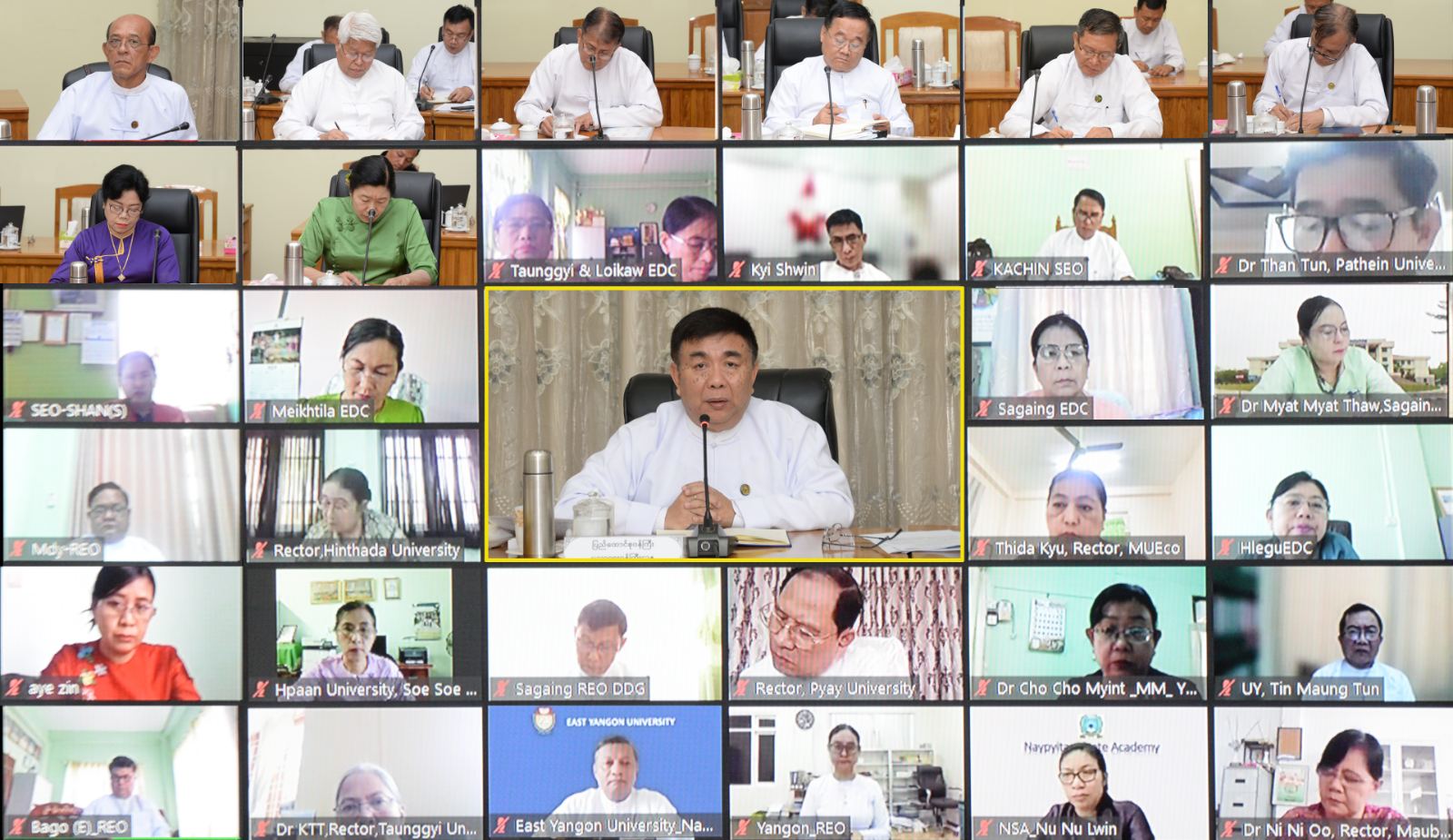 တွေ့ဆုံပွဲသို့ ဒုတိယဝန်ကြီး ဒေါက်တာမိုးဇော်ထွန်း၊ အမြဲတမ်းအတွင်းဝန် ဒေါက်တာစိုးဝင်း၊ ပညာရေးဝန်ကြီးဌာနရှိ ဦးစီးဌာနများမှ ညွှန်ကြားရေးမှူးချုပ်များ၊ ဒုတိယအမြဲတမ်းအတွင်းဝန်၊ ဒုတိယညွှန်ကြားရေးမှူးချုပ်နှင့် တာဝန်ရှိသူများ တက်ရောက်ကြပြီး တက္ကသိုလ်ပါမောက္ခချုပ်များ၊ ပညာရေးဒီဂရီကောလိပ်ကျောင်းအုပ်ကြီးများနှင့် တိုင်းဒေသကြီး/ပြည်နယ် ပညာရေးမှူးများက အွန်လိုင်းဖြင့်တက်ရောက်ကြသည်။