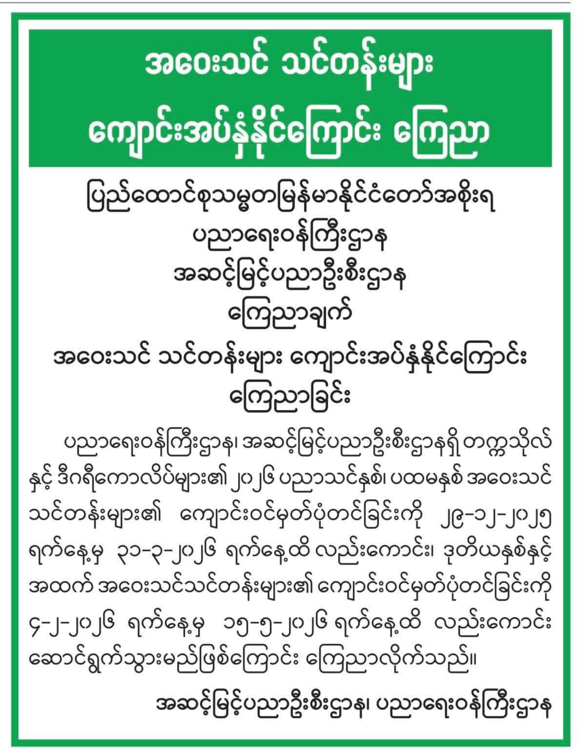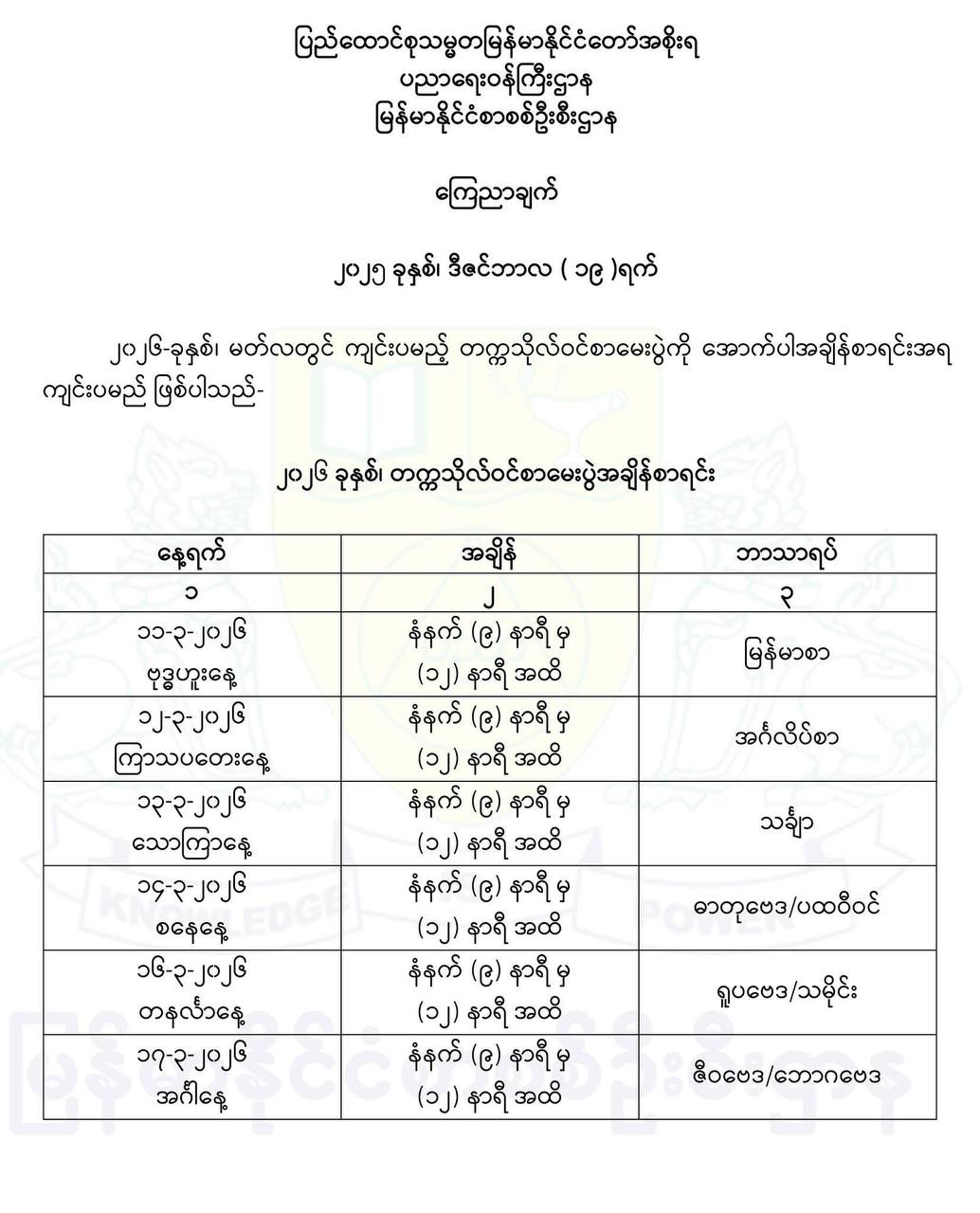 နေပြည်တော် ၂၀၂၆ ဖေဖော်ဝါရီ ၂၆