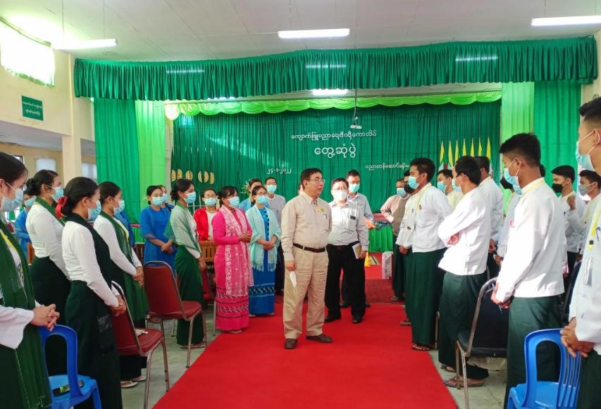 ထိုမှတဆင့် ပြည်ထောင်စုဝန်ကြီးသည် ကျောက်ဖြူ ပညာရေးဒီဂရီကောလိပ်၌ အဆိုပါကောလိပ်ရှိ ပညာတန်ဆောင်ခန်းမတွင် ကျောင်းအုပ်ကြီး၊ ဌာနမှူးများ၊ ဆရာ၊ဆရာမများ၊ လုပ်ငန်းခွင်အကြို မူလတန်း ဆရာအတတ်ပညာသင်တန်းမှ သင်တန်းသား၊ သင်တန်းသူများနှင့်တွေ့ဆုံကာ နိုင်ငံတစ်နိုင်ငံ ဖွံ့ဖြိုးတိုးတက်ရေး အတွက် ပညာတတ်များ များစွာမွေးထုတ်ပေးရန် နိုင်ငံတော်အကြီးအကဲမှ လမ်းညွှန်မှာကြားလေ့ရှိပါကြောင်း၊ ပညာရေးဒီဂရီကောလိပ်များသည် မိမိတို့နိုင်ငံ အတွက် ထူးချွန်ထက်မြတ်သည့် ကျောင်းသားကျောင်းသူများကို လေ့ကျင့်မွေးထုတ် ပေးမည့်ဆရာဆရာမကောင်းများ လေ့ကျင့်ပျိုးထောင်ပေးသည့် ကျောင်းကြီးများ ဖြစ်ပါကြောင်း၊ သင်တန်းသား၊ သင်တန်းသူများအနေဖြင့် ကြိုးစား သင်ယူကြရန်နှင့် မိမိတို့သင်ကြားရေး တာဝန်ယူဆောင်ရွက်ရာတွင်လည်း စေတနာ အပြည့်ဖြင့် အမှန်တကယ် နားလည်တတ်ကျွမ်းသူများဖြစ်စေရန် သင်ကြားပေးကြစေလို ပါကြောင်း ပြောကြားသည်။ ယင်းနောက် ပညာရေးဒီဂရီကောလိပ် ဆရာ၊ ဆရာမ များနှင့် သင်တန်းသား၊ သင်တန်းသူများအတွက် အိပ်ဆောင်၊ စာသင်ဆောင်နှင့် သင်ကြားသင်ယူမှုအတွက် လိုအပ်ချက်များကို ညှိနှိုင်းဖြည့်ဆည်းဆောင်ရွက်ပေး သည်။