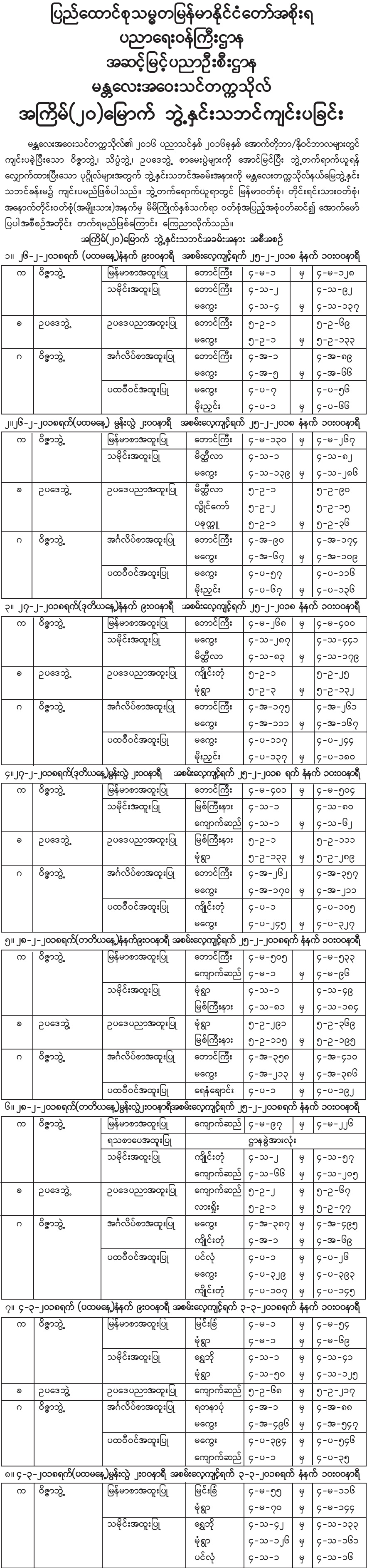 မန္တလေးအဝေးသင်တက္ကသိုလ် အကြိမ်(၂၀)မြောက် ဘွဲ့နှင်းသဘင်ကျင်းပခြင်း
