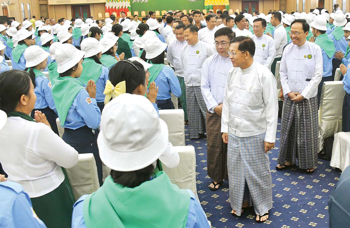နိုင်ငံတော်စီမံအုပ်ချုပ်ရေးကောင်စီဥက္ကဋ္ဌ နိုင်ငံတော်ဝန်ကြီးချုပ် ဗိုလ်ချုပ်မှူးကြီး မင်းအောင်လှိုင်သည် ၂၀၂၂-၂၀၂၃ ပညာသင်နှစ် လူရည်ချွန်မောင်မယ်များအား ယနေ့ နံနက်ပိုင်းတွင် နေပြည်တော်ရှိ မြန်မာအပြည်ပြည်ဆိုင်ရာကွန်ဗင်းရှင်းဗဟိုဌာန-၂ (MICC-II)၌ တွေ့ဆုံ၍ ဩဝါဒစကား မြွက်ကြားသည်။