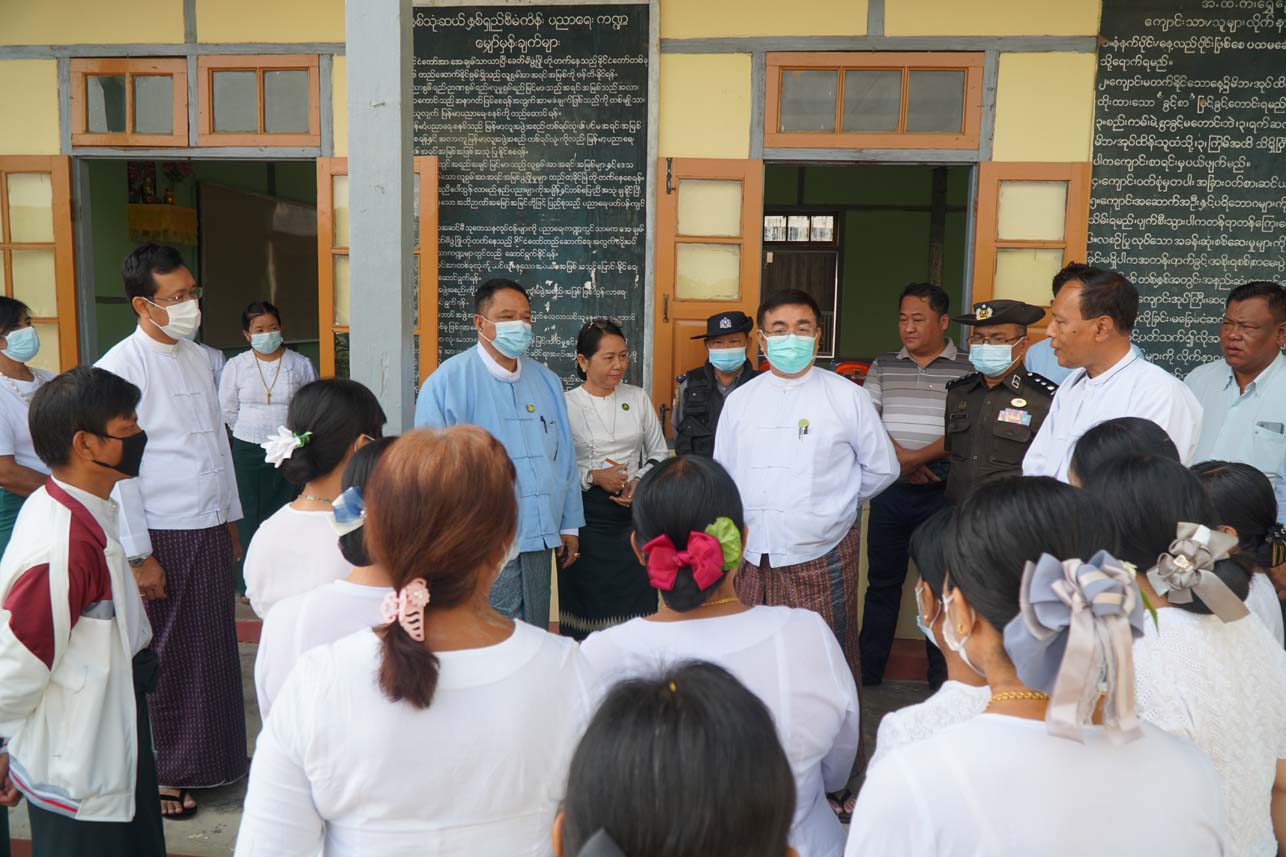 ထိုသို့ ကြည့်ရှုစစ်ဆေးရာတွင် ပြည်ထောင်စုဝန်ကြီးက ဇွန် ၂ရက်တွင် ကျောင်းများ ဖွင့်လှစ်သည့်အခါ ကျောင်းသား ကျောင်းသူများ အေးချမ်းစွာပညာ သင်ကြားနိုင်ရေး အတွက် လိုအပ်သည်များ ပြည့်စုံအောင် ဖြည့်ဆည်းဆောင်ရွက် ထားကြရမည် ဖြစ်ကြောင်း၊ နိုင်ငံတော်ဝန်ကြီးချုပ်က နိုင်ငံ၏ပညာရေးဖွံ့ဖြိုး တိုးတက်ရေးအတွက် အထူးအားပေး၍ ဖြည့်ဆည်းဆောင်ရွက် ပေးလျက်ရှိကြောင်း၊ ဆရာ ဆရာမများအနေဖြင့် မိမိပြည်နယ်၊ မိမိဒေသတွင်ရှိသည့် မျိုးဆက်သစ် ကျောင်းသား ကျောင်းသူများကို ပညာတတ်လူတော် လူကောင်းများဖြစ်အောင် မိမိတို့ကိုယ်တိုင် စေတနာ၊ ဝါသနာ၊ အနစ်နာဖြင့် အားစိုက်ပြီးပြုစုပျိုးထောင် သင်ကြားပေးကြ စေလိုကြောင်း၊ ပညာတတ်များ ပေါများမှသာ နိုင်ငံအဆင့်တိုးတက်မြင့်မား လာမည်ဖြစ်ကြောင်း၊ ဆရာ ဆရာမများ အနေဖြင့် မိမိတို့၏အရည်အသွေး တိုးတက်ရေးအတွက် အမြဲလေ့လာဆည်းပူး နေကြရမည်ဖြစ်ကြောင်း။