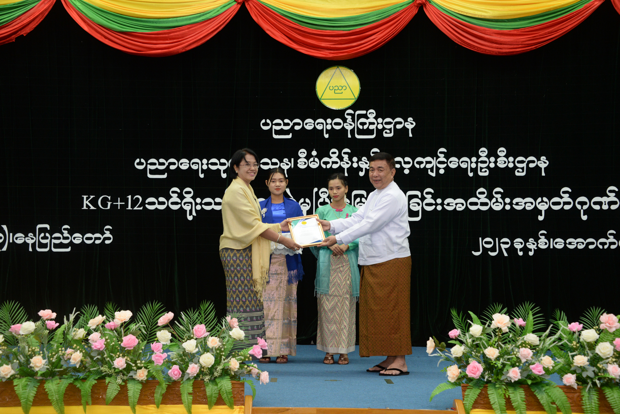 ထို့နောက် ပြည်ထောင်စုဝန်ကြီး၊ ဒုတိယဝန်ကြီးများ၊ အမြဲတမ်းအတွင်းဝန်နှင့် ညွှန်ကြားရေးမှူးချုပ်များက KG+12 သင်ရိုးသစ်ရေးဆွဲခဲ့ကြသော အမျိုးသားသင်ရိုးညွှန်းတမ်း ကော်မတီ (NCC)မှ ဆရာကြီး ဆရာမကြီးများ၊ ဘာသာရပ် သင်ရိုးညွှန်းတမ်း ကော်မတီ (SWCC) ဥက္ကဋ္ဌများနှင့် အဖွဲ့ဝင်များ၊ သင်ရိုးညွှန်းတမ်း ရေးဆွဲရေးအဖွဲ့ဝင် (CDT)ဆရာ ဆရာမများအား ဂုဏ်ပြု မှတ်တမ်းလွှာ ပေးအပ်ချီးမြှင့်သည်။