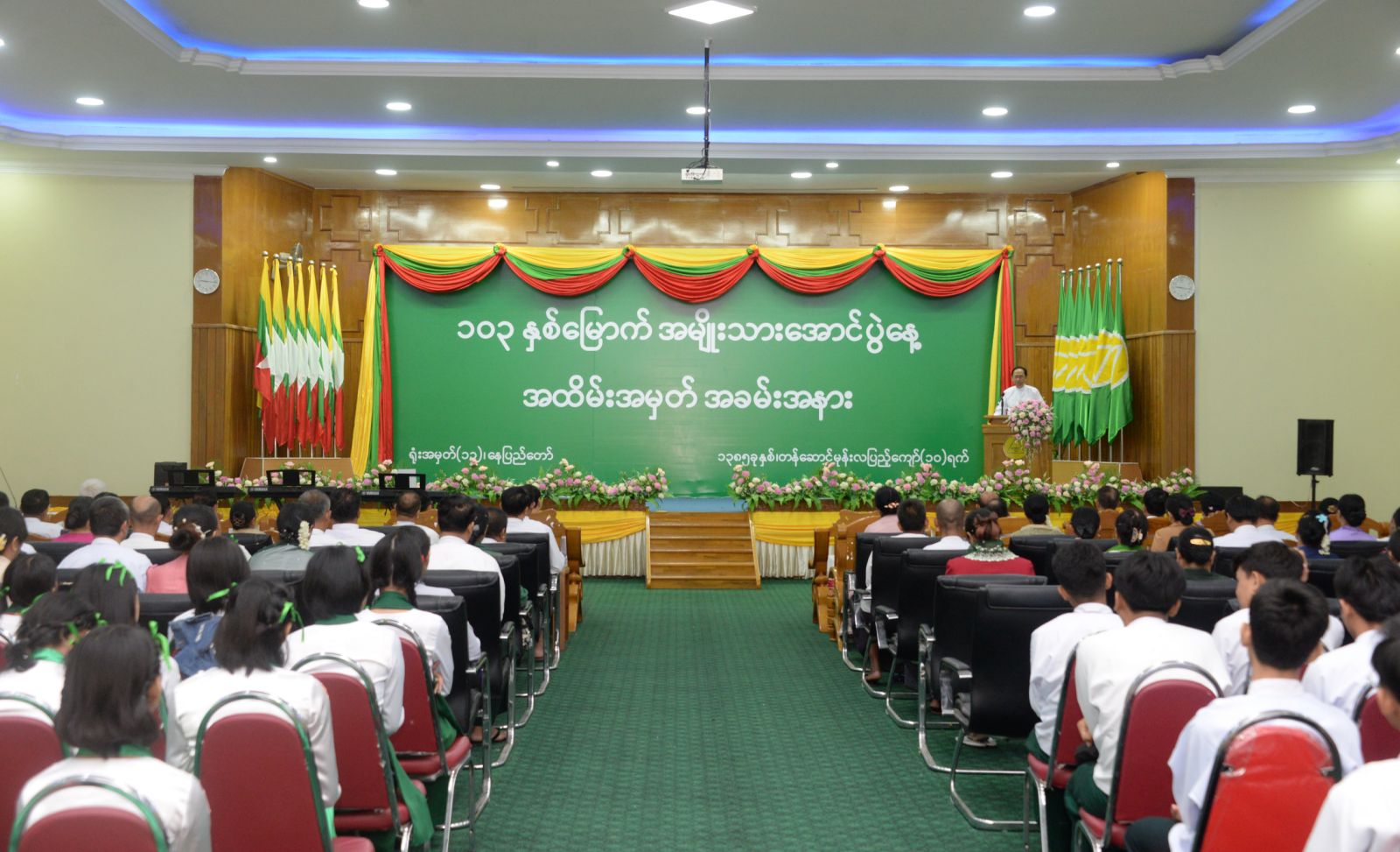 (၁၀၃) နှစ်မြောက် အမျိုးသားအောင်ပွဲနေ့ အထိမ်းအမှတ်အခမ်းအနားကို ယနေ့ နံနက် ၉ နာရီတွင် နေပြည်တော်ရှိ ပညာရေးဝန်ကြီးဌာန ရုံးအမှတ် (၁၃) အစည်းအဝေးခန်းမ၌ ကျင်းပရာ ကျန်းမာရေးဝန်ကြီးဌာန ပြည်ထောင်စုဝန်ကြီး ဒေါက်တာသက်ခိုင်ဝင်း၊ ဒုတိယဝန်ကြီးများ၊ နေပြည်တော်ကောင်စီဝင်၊ အမြဲတမ်းအတွင်းဝန်များ၊ ဌာနဆိုင်ရာအကြီးအကဲများ၊ ခရိုင်/မြို့နယ် ပညာရေးမှူးများ၊ ကျောင်းအုပ်ကြီးများ၊ ဆရာ ဆရာမများ၊ ကျောင်းသား ကျောင်းသူများ နှင့်တာဝန်ရှိသူများ တက်ရောက်ကြသည်။