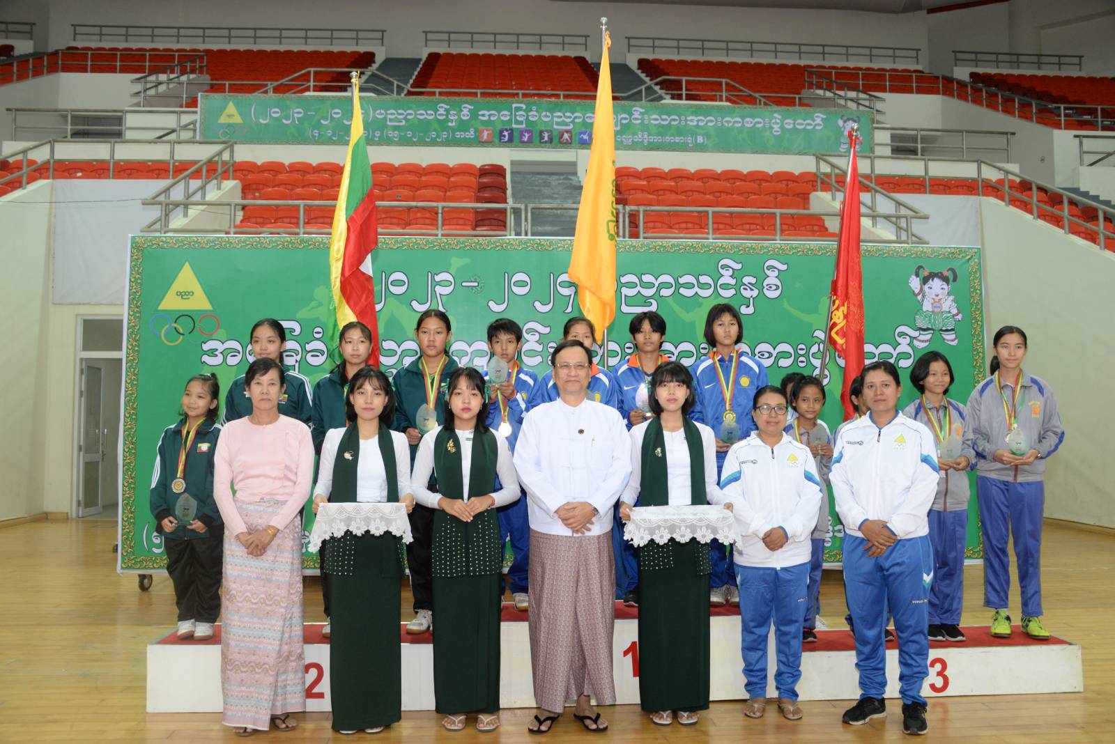 ဝဏ္ဏသိဒ္ဓိအားကစားကွင်း(B)ရုံတွင် ကျင်းပသည့် ကြက်တောင်ပြိုင်ပွဲတွင် အမျိုးသားအသင်းလိုက် ပထမဆုကို ရန်ကုန်၊ ဒုတိယဆုကို ဧရာဝတီ၊ တတိယဆုကို ကရင်ပြည်နယ်တို့က ရရှိကြပြီး အမျိုးသမီးအသင်းအလိုက် ပထမဆုကို ပဲခူး၊ ဒုတိယဆုကို ဧရာဝတီ၊ တတိယဆုကို ရှမ်းပြည်နယ်တို့က ရရှိကြရာ ဆုများကို ပညာရေးဝန်ကြီးဌာန ဒုတိယဝန်ကြီး ဒေါက်တာမိုးဇော်ထွန်းက ချီးမြှင့်ပေးအပ်သည်။