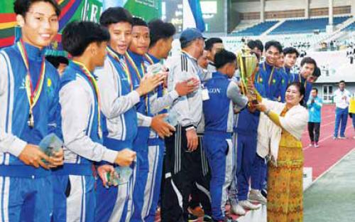 ၂၀၂၃-၂၀၂၄ ပညာသင်နှစ် အခြေခံပညာကျောင်းသား အားကစားပွဲတော် ဘောလုံးပြိုင်ပွဲ (အမျိုးသား) ဗိုလ်လုပွဲနှင့် ဆုချီးမြှင့်ပွဲအခမ်းအနားကို ယနေ့မွန်းလွဲပိုင်းတွင် နေပြည်တော်ရှိ ဝဏ္ဏသိဒ္ဓိဘောလုံးကွင်း၌ ကျင်းပရာ နိုင်ငံတော်စီမံအုပ်ချုပ်ရေး ကောင်စီဝင်များ တက်ရောက်ကြည့်ရှု အားပေးပြီး ဆုများပေးအပ်ချီးမြှင့်ကြသည်။