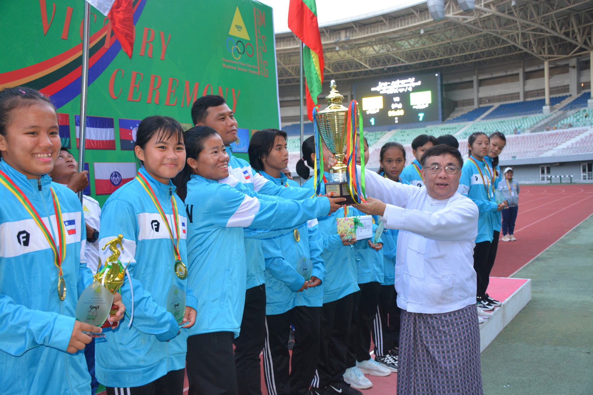 ယနေ့ကျင်းပသည့် ၂၀၂၃- ၂၀၂၄ ပညာသင်နှစ် အခြေခံပညာကျောင်းသားအားကစားပွဲတော် အမျိုးသမီးဘောလုံးပြိုင်ပွဲဗိုလ်လုပွဲတွင် ကရင်ပြည်နယ်အသင်းက ရှမ်းပြည်နယ်အသင်းကို ခုနစ်ဂိုး- တစ်ဂိုးဖြင့် အနိုင်ရဗိုလ်စွဲသွားသည်။
