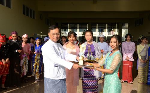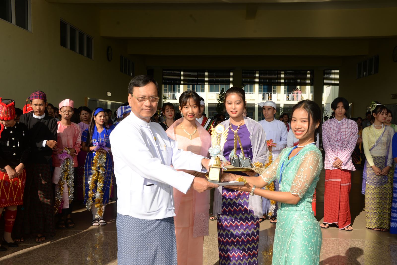 Naypyitaw State Academy (၇၇) နှစ်မြောက် ပြည်ထောင်စုနေ့အထိမ်းအမှတ် တိုင်းရင်းသားရိုးရာအစားအစာ ဈေးရောင်းပွဲတော်နှင့် စာစီစာကုံး၊ ဆောင်းပါး၊ ပန်းချီ၊ အင်္ဂလိပ်စာနှင့် သင်္ချာစွမ်းရည်ပြိုင်ပွဲ ဆုချီးမြှင့်ပွဲအခမ်းအနားကို ယနေ့နံနက်ပိုင်းတွင် အဆိုပါတက္ကသိုလ်ရှိ ပင်မဆောင်အောက်၌ ကျင်းပသည်။