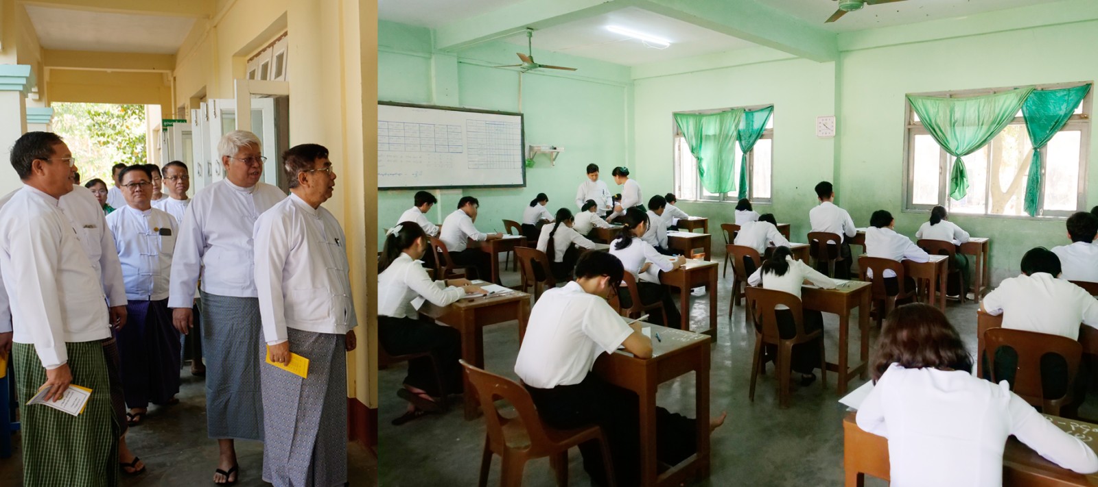 ထို့အတူ ပညာရေးဝန်ကြီးဌာန ဒုတိယဝန်ကြီး ဒေါက်တာမိုးဇော်ထွန်းသည် ဆရာအတတ်ပညာဦးစီးဌာန ညွှန်ကြားရေးမှူးချုပ် ဒေါ်နှင်းကြည်၊ နေပြည်တော်ကောင်စီနယ်မြေ ပညာရေးမှူး ဒေါက်တာကျော်လွင် ခရိုင်၊ မြို့နယ် ပညာရေးမှူးများနှင့်အတူ ပုဗ္ဗသီရိမြို့နယ် အမှတ်(၃)အခြေခံပညာအထက်တန်းကျောင်း၊ အမှတ်(၂၀)အခြေခံပညာအထက်တန်းကျောင်းနှင့် ဇေယျာသီရိမြို့နယ်(ရေဆင်း) အခြေခံပညာအထက်တန်းကျောင်းတို့ရှိ စာစစ်ဌာနများသို့ သွားရောက်ပြီး ကျောင်းသား ကျောင်းသူများ တက္ကသိုလ်ဝင်စာမေးပွဲ မြန်မာစာဘာသာရပ် အေးချမ်းစွာဖြေဆိုနေမှုကို လှည့်လည် ကြည့်ရှုအားပေးကာ လိုအပ်သည်များ ဖြည့်ဆည်းဆောင်ရွက်ပေးသည်။