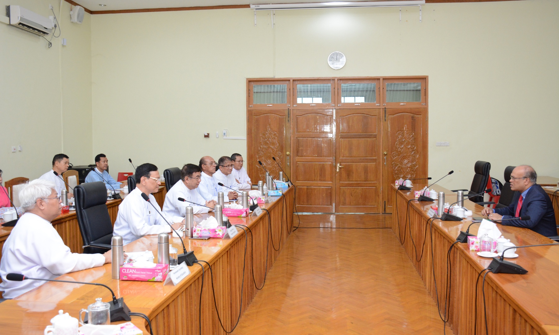ပညာရေးဝန်ကြီးဌာန ပြည်ထောင်စုဝန်ကြီး ဒေါက်တာညွန့်ဖေသည် မြန်မာနိုင်ငံဆိုင်ရာ ဘင်္ဂလားဒေ့ရှ်နိုင်ငံ သံအမတ်ကြီး မစ္စတာ မိုဟာမက်မွန်(န)ဝါဟူစိန်ကို ယနေ့ နံနက် ၁၁ နာရီတွင် နေပြည်တော် ပညာရေးဝန်ကြီးဌာန ရုံးအမှတ် (၁၃) ရှိ အစည်းအဝေးခန်းမ၌ လက်ခံတွေ့ဆုံသည်။