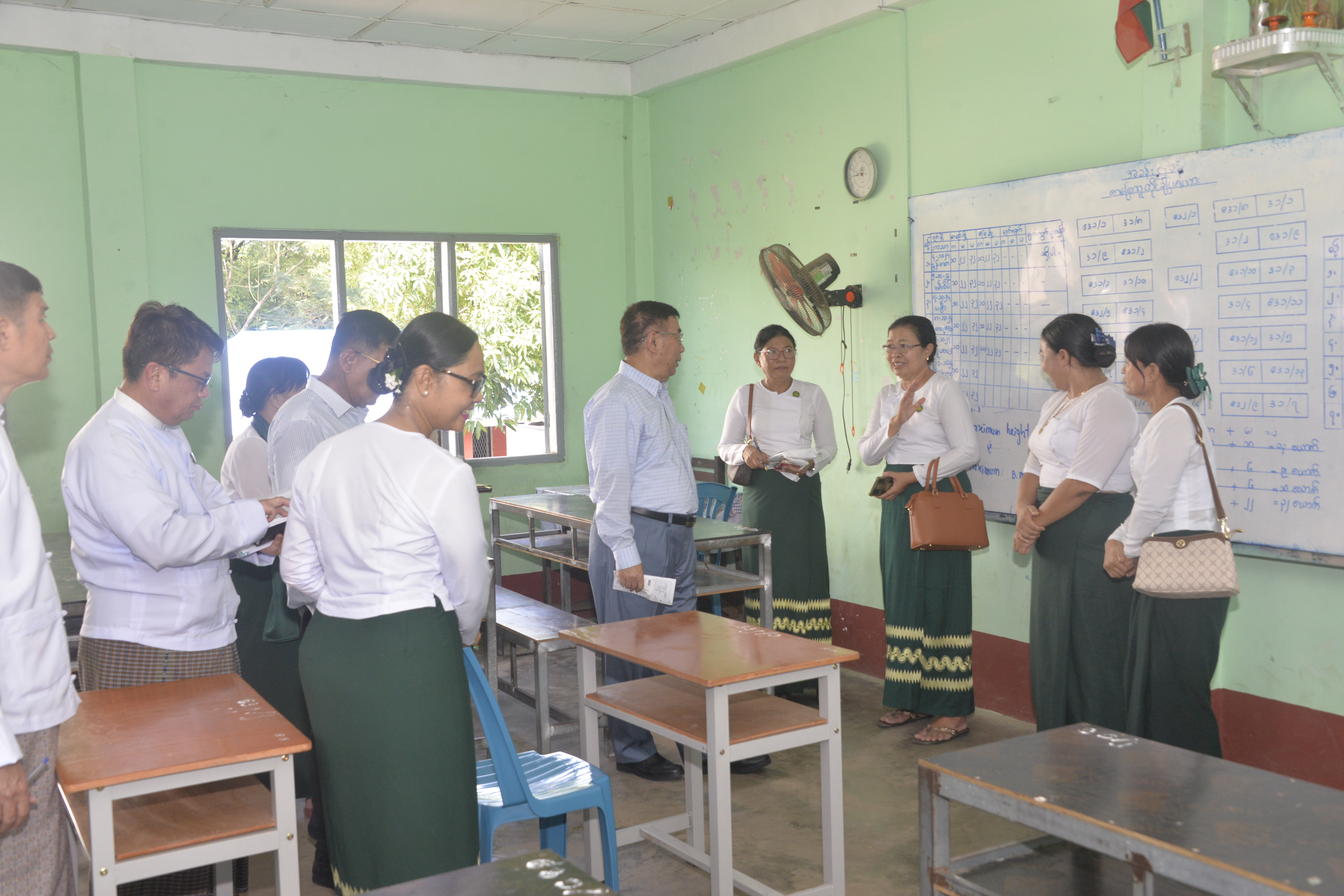 ထို့နောက် ပဲခူးမြို့ အခြေခံပညာ အထက်တန်းကျောင်း အင်းတကော်နှင့် ပဲခူးတက္ကသိုလ်တို့သို့ ရောက်ရှိပြီး ကျောင်းဝင်းအတွင်း လှည့်လည်ကြည့်ရှုစစ်ဆေးကာ ပါမောက္ခချုပ်၊ ဒုတိယ ပါမောက္ခချုပ်များ၊ တာဝန်ရှိသူများ၊ ဆရာ ဆရာမများနှင့်တွေ့ဆုံ၍ တက္ကသိုလ်များနှင့် ကျောင်းများ၏ ဥပဓိရုပ်ကောင်းမွန်ရေး၊ စိမ်းလန်းစိုပြည် သာယာလှပရေးတို့ကို အထူးအလေးထား ဆောင်ရွက်ကြရန်၊ ကျောင်းသား ကျောင်းသူများ စိတ်အေးချမ်းသာစွာ ပညာသင်ယူနိုင်ရေး၊ အရည်အသွေးရှိသော ကျောင်းသား ကျောင်းသူများဖြစ်လာစေရန် ပြုစုပျိုးထောင်ပေးရေး ကိစ္စရပ်များကို ဆွေးနွေးမှာကြားပြီး တင်ပြချက်များကို ညှိနှိုင်းဖြည့်ဆည်း ဆောင်ရွက်ပေးသည်။