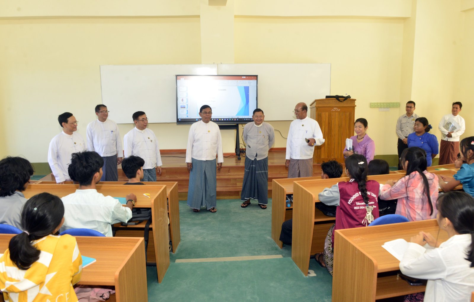 ကျောင်းသားဗဟိုပြုသင်ကြားမှုစနစ်ကို အကောင်အထည်ဖော်နိုင်ရန် အရည်အသွေး ရှိသော သင်ကြား၊ သင်ယူမှုကို ထိရောက်စွာဆောင်ရွက်နိုင်ရန် စာသင်ခန်းတိုင်းအတွက် Interactive Smart Blackboard များကိုလည်း တပ်ဆင်ပေးထားသည့်အပြင် Up-to-Date ဖြစ်သည့် Textbooks များ၊ ခေတ်မီလက်တွေ့ခန်းသုံး ပစ္စည်းများ၊ Internet Access နှင့် e-library အပါအဝင် သင်ထောက်ကူပစ္စည်းများကို ပြည့်စုံစွာ ဖြည့်ဆည်းပေးထားပြီးဖြစ်ပါကြောင်း၊ အထူးပြုဘာသာရပ်များကို သင်ကြားပို့ချမည့် ဆရာဆရာမများအနေဖြင့် ကျောင်းသား ကျောင်းသူများအား စဉ်းစားတွေးခေါ်နိုင်မှု၊ တီထွင်ဖန်တီးနိုင်မှုစွမ်းရည်များမြင့်မားပြီး စိတ်ဓာတ် နှင့် ခံယူချက်မှန်ကန်ကောင်းမွန်သည့် အသိပညာရှင်၊ အတတ်ပညာရှင်များ၊ နိုင်ငံတော်က အားကိုးအားထားပြုအပ်သော လူ့စွမ်းအားအရင်းအမြစ်များ ပေါ်ထွန်းလာစေရေး ဝိုင်းဝန်း ကြိုးပမ်းဆောင်ရွက်ကြစေလိုပါကြောင်း ပြောကြားကာ စာသင်ဆောင်များအတွင်း လှည့်လည် ကြည့်ရှုစစ်ဆေး၍ လိုအပ်သည်များကို ဖြည့်ဆည်းဆောင်ရွက်ပေးခဲ့ကြောင်း သိရသည်။