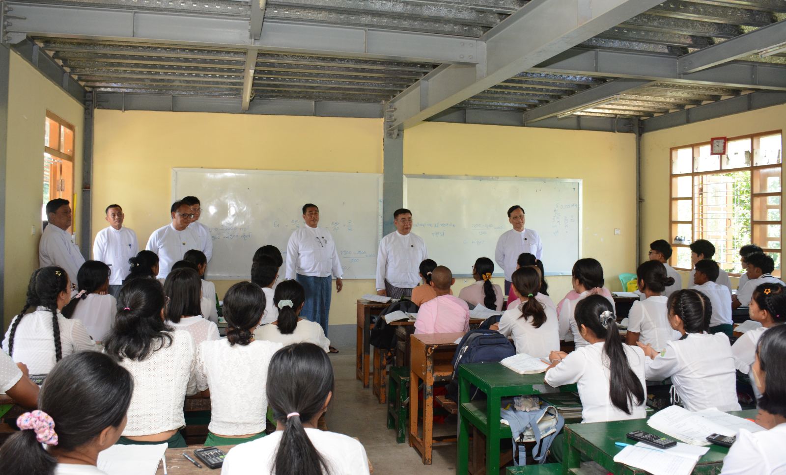 ယင်းနောက် ပြည်ထောင်စုဝန်ကြီးသည် ကျောင်းအတွင်း လှည့်လည်ကြည့်ရှုစစ်ဆေးကာ ဝိုင်းဝန်းပံ့ပိုးကူညီကြသူများ၊ သင်ကြားပို့ချပေးသည့် ပါမောက္ခ၊ ဆရာ ဆရာများ၊ အခြေခံပညာ ဆရာ ဆရာမများ၊ ကျန်းမာရေးဝန်ကြီးဌာန၏ ဆေးပေးခန်းမှ သူနာပြုဆရာမများကို ရင်းရင်းနှီးနှီး တွေ့ဆုံနှုတ်ဆက်ကာ လိုအပ်သည်များကို ပေါင်းစပ်ညှိနှိုင်း ဖြည့်ဆည်းဆောင်ရွက်ပေးခဲ့ကြောင်း သိရသည်။