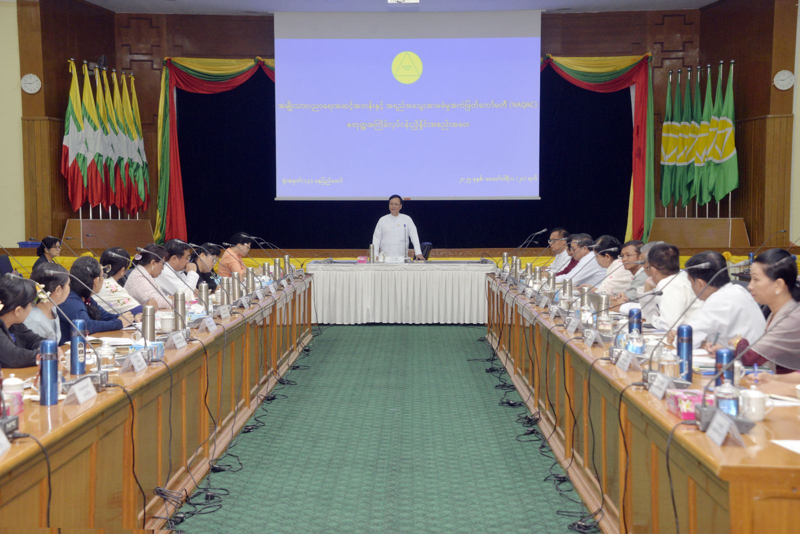 အမျိုးသားပညာရေးအဆင့်အတန်းနှင့် အရည်အသွေးအာမခံမှု အကဲဖြတ်ကော်မတီ (NAQAC) စတုတ္ထအကြိမ် လုပ်ငန်းညှိနှိုင်းအစည်းအဝေးကို ယနေ့နံနက် ၉ နာရီတွင် ပညာရေး ဝန်ကြီးဌာန အစည်းအဝေးခန်းမ၌ ကျင်းပရာ ပညာရေးဝန်ကြီးဌာန ဒုတိယဝန်ကြီး ဒေါက်တာဇော်မြင့်နှင့် ညွှန်ကြားရေးမှူးချုပ်များ၊ ပညာရေးနှင့် ဆက်စပ်ဝန်ကြီးဌာနကိုးခုမှ ကော်မတီဝင်များ တက်ရောက်ကြသည်။