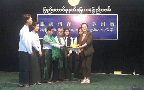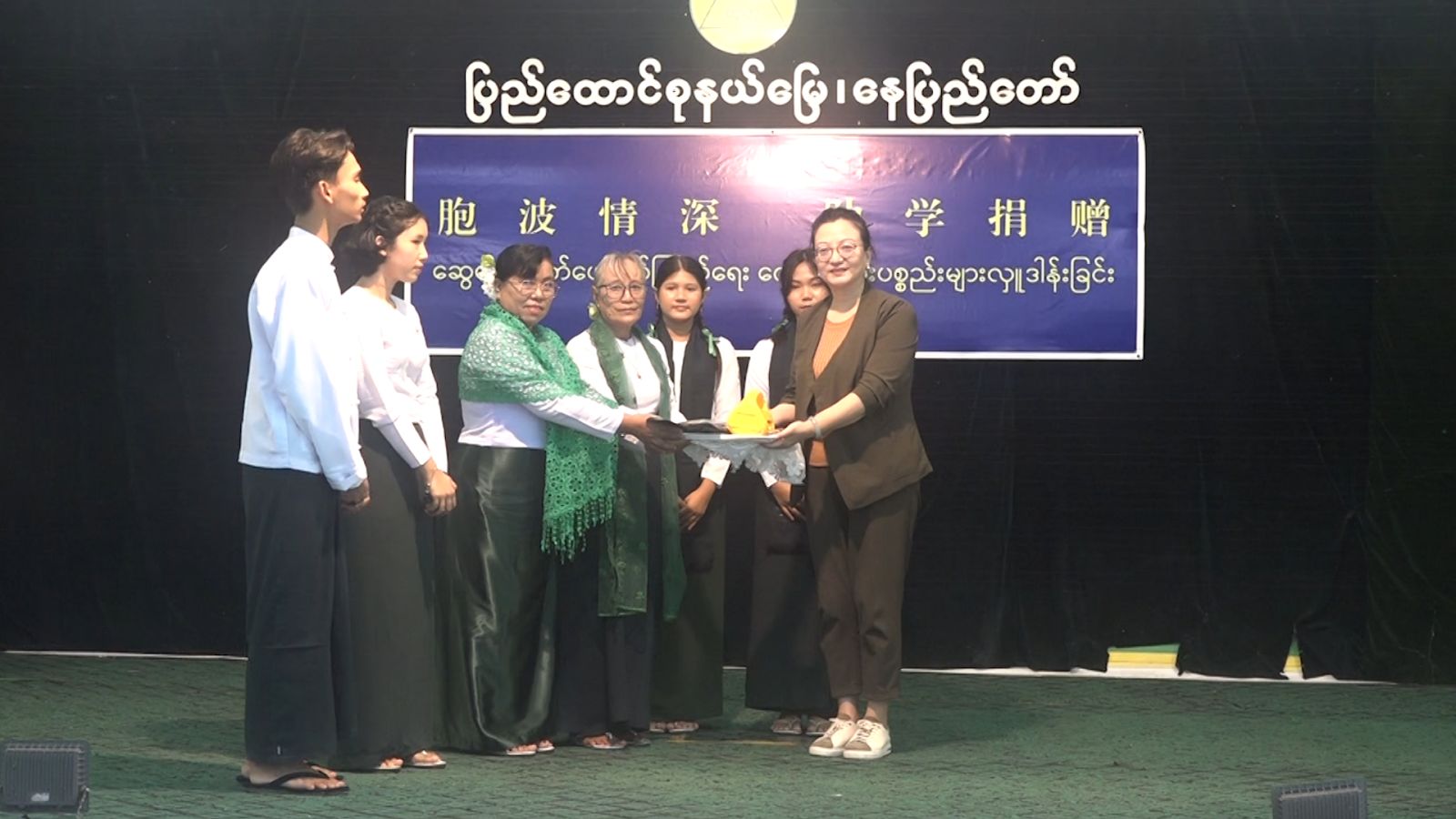 မြန်မာနိုင်ငံဆိုင်ရာ တရုတ်ပြည်သူ့သမ္မတနိုင်ငံသံရုံးနှင့် China Foundation for Rural Development (CFRD) တို့က တရုတ်-မြန်မာ ချစ်ကြည်ရေးကျောင်းများသို့ ကျောင်းသုံးပစ္စည်းများ ပေးအပ်လှူဒါန်းပွဲအခမ်းအနားကို ယနေ့နံနက် ၉ နာရီခွဲတွင် နေပြည်တော် ဇမ္ဗူသီရိမြို့နယ် အမှတ်(၁၄)အခြေခံပညာအထက်တန်းကျောင်း၌ ကျင်းပရာ ပညာရေးဝန်ကြီးဌာန ဒုတိယဝန်ကြီး ဦးနေမျိုးလှိုင်၊ မြန်မာနိုင်ငံဆိုင်ရာ တရုတ်ပြည်သူ့သမ္မတ နိုင်ငံသံအမတ်ကြီး မစ္စမာကျားနှင့် တာဝန်ရှိသူများ၊ CFRD အဖွဲ့မှ တာဝန်ရှိသူများ၊ ခရိုင်၊ မြို့နယ်ပညာရေးမှူးများ၊ ကျောင်းအုပ်ကြီးများ၊ ကျောင်းသား ကျောင်းသူများနှင့် တာဝန်ရှိသူများ တက်ရောက်ကြသည်။