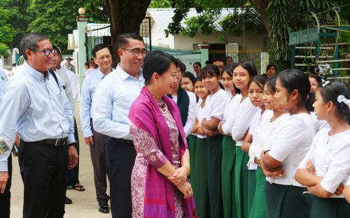 ယင်းနောက် စစ်ကိုင်းမြို့ အမှတ်(၁)အခြေခံပညာ အထက်တန်းကျောင်းနှင့် စစ်ကိုင်းပညာရေး ဒီဂရီကောလိပ်ကျောင်းများမှ ဆရာ ဆရာမများ၊ ကျောင်းသား ကျောင်းသူများနှင့် တွေ့ဆုံအမှာစကားပြောကြားပြီးကျောင်းအတွင်း စာသင်ဆောင်ပြုပြင် တည်ဆောက်ထားရှိမှု၊ ယာယီစာသင်ဆောင်များတွင် ကျောင်းသား ကျောင်းသူများ စိတ်အေးချမ်းသာစွာ သင်ယူနေမှုအခြေအနေများကို လှည့်လည်ကြည့်ရှုကာ လိုအပ်သည်များမှာကြားသည်။
