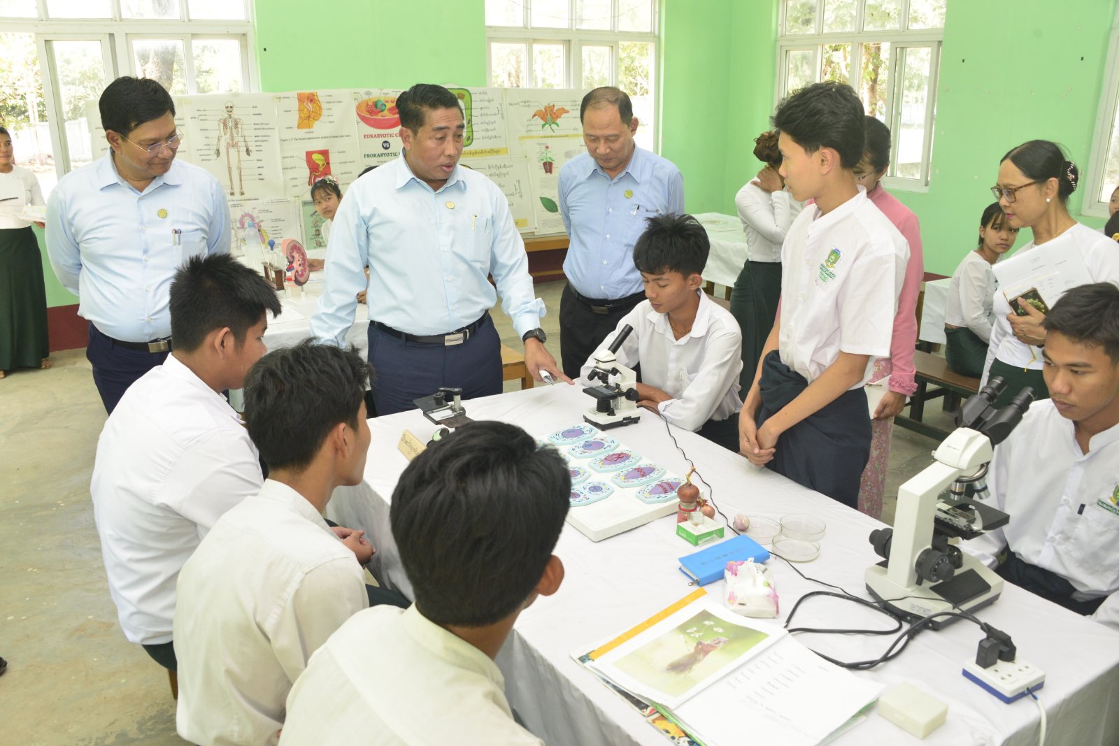 ဆက်လက်၍ သင်တန်းကျောင်းအတွင်း လှည့်လည်ကြည့်ရှုစစ်ဆေး၍ လိုအပ်သည်များကို မှာကြားကာ သင်တန်းသား သင်တန်းသူများနှင့်အတူ ရင်နှီးခင်မင်စွာဖြင့် နေ့လယ်စာ အတူတကွသုံးဆောင်ကြသည်။