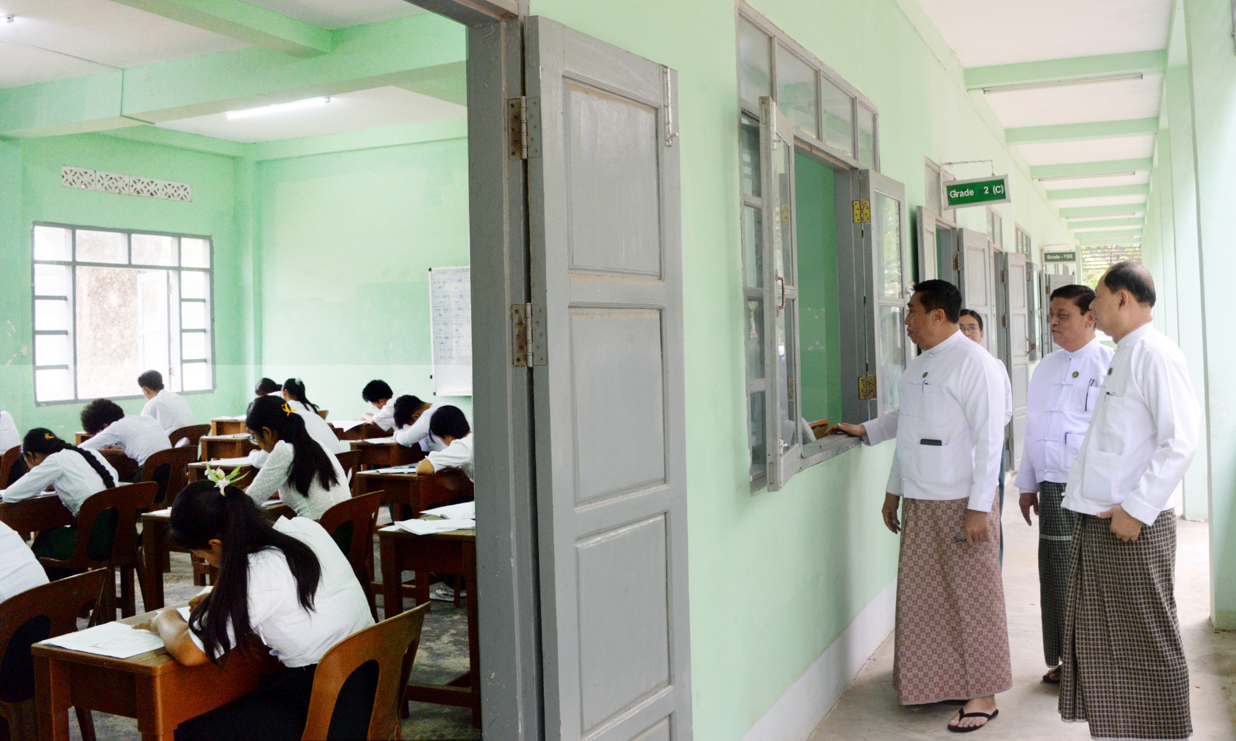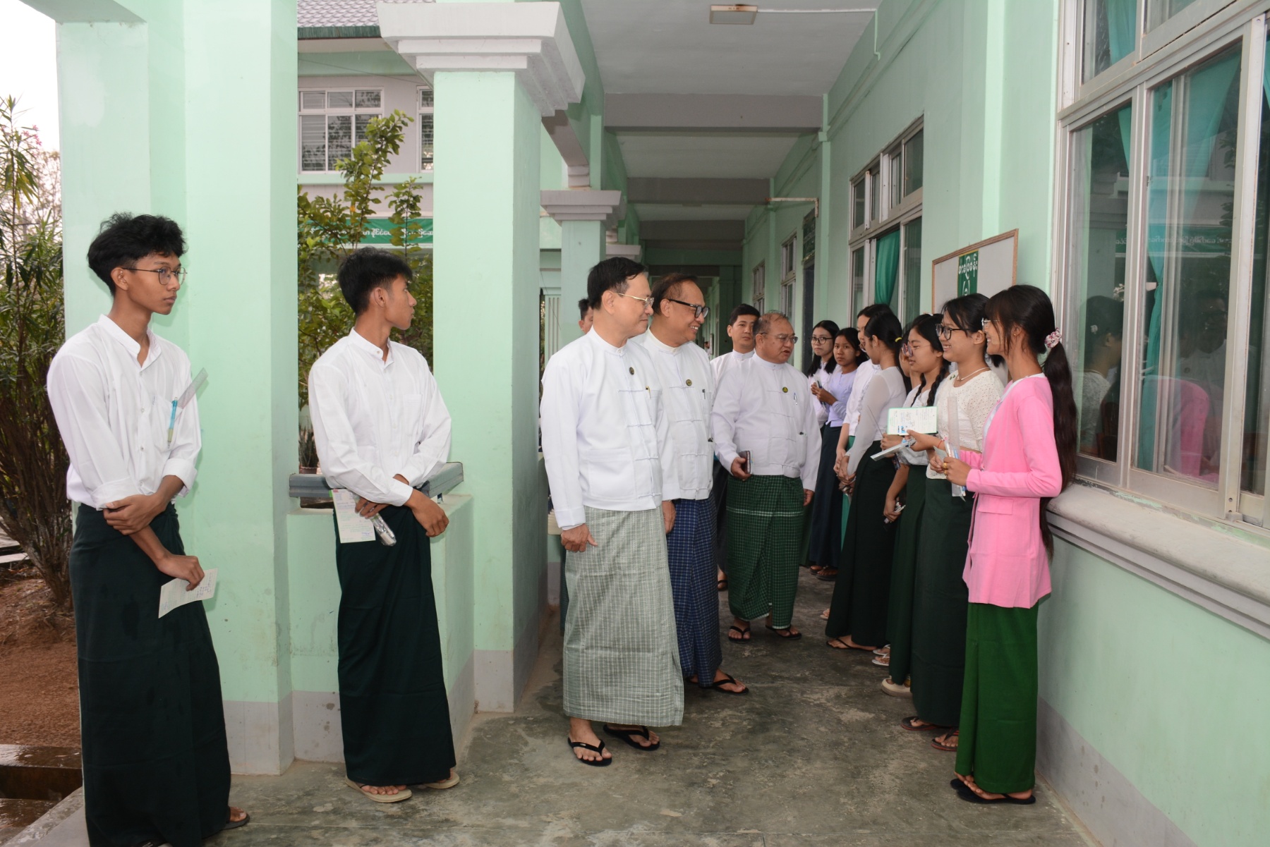 ထို့အတူ ဒုတိယ၀န်ကြီး ဦးနေမျိုးလှိုင်နှင့် တာ၀န်ရှိသူများသည် ပျဉ်းမနားမြို့ အမှတ်(၃) အခြေခံပညာအထက်တန်းကျောင်း စာစစ်ဌာန၌ တက္ကသိုလ်ဝင်စာမေးပွဲ လာရောက်ဖြေဆိုကြသည့် ကျောင်းသား ကျောင်းသူများ၏ မိဘများနှင့် အုပ်ထိန်းသူများအား တွေ့ဆုံအားပေးစကားပြောကြားပြီး တာဝန်ကျစာမေးပွဲကြီးကြပ်ရေးမှူးနှင့် လက်ထောက်ကြီးကြပ်ရေးမှူး ဆရာ ဆရာမများက စာဖြေသူများလိုက်နာရန် စာမေးပွဲစည်းမျဉ်းစည်းကမ်းများကို ဖတ်ကြားရှင်းပြခြင်း၊ ခုံအမှတ် မှန်ကန်မှုစစ်ဆေးခြင်း၊ မေးခွန်းစာမျက်နှာစုံလင်မှုစစ်ဆေးခြင်း ဆောင်ရွက်နေမှုများကို ကြည့်ရှုစစ်ဆေးကာ ကျောင်းသား ကျောင်းသူများ စိတ်အေးချမ်းသာစွာ ဖြေဆိုနေမှုကို ကြည့်ရှုအားပေးသည်။