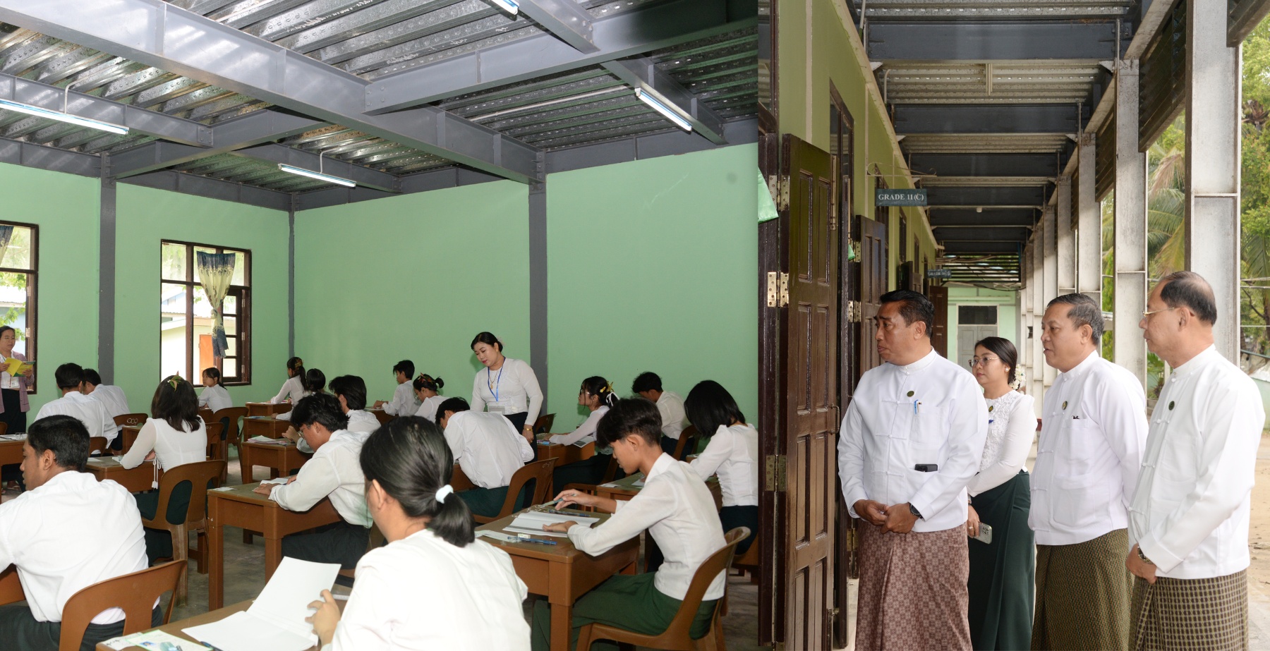 ပညာရေး၀န်ကြီးဌာန ဒုတိယ၀န်ကြီး ဒေါက်တာဇော်မြင့်နှင့် ဦးနေမျိုးလှိုင်တို့သည် တာဝန်ရှိသူများနှင့်အတူ ယနေ့နံနက်ပိုင်းတွင် ၂၀၂၆ ခုနှစ် တက္ကသိုလ်၀င်စာမေးပွဲနှင့် စက်မှု၊ စိုက်ပျိုး၊ မွေးမြူရေး တက္ကသိုလ်ဝင်စာမေးပွဲ ပထမနေ့ မြန်မာစာဘာသာရပ် ဖြေဆိုနေမှုများကို သီးခြားစီ လှည့်လည်ကြည့်ရှုအားပေးကြသည်။