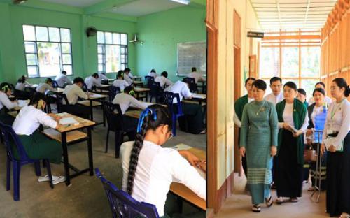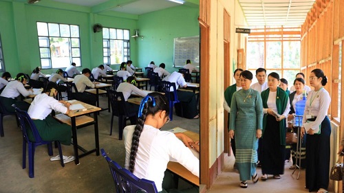 ပြည်ထောင်စုဝန်ကြီး ဒေါက်တာချောချောစိန် ၂၀၂၆ ခုနှစ် တက္ကသိုလ်ဝင်စာမေးပွဲ ဒုတိယနေ့ အင်္ဂလိပ်စာဘာသာရပ် ကျောင်းသား ကျောင်းသူများ အေးချမ်းစွာဖြေဆိုနေမှု ကြည့်ရှုအားပေး