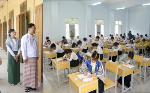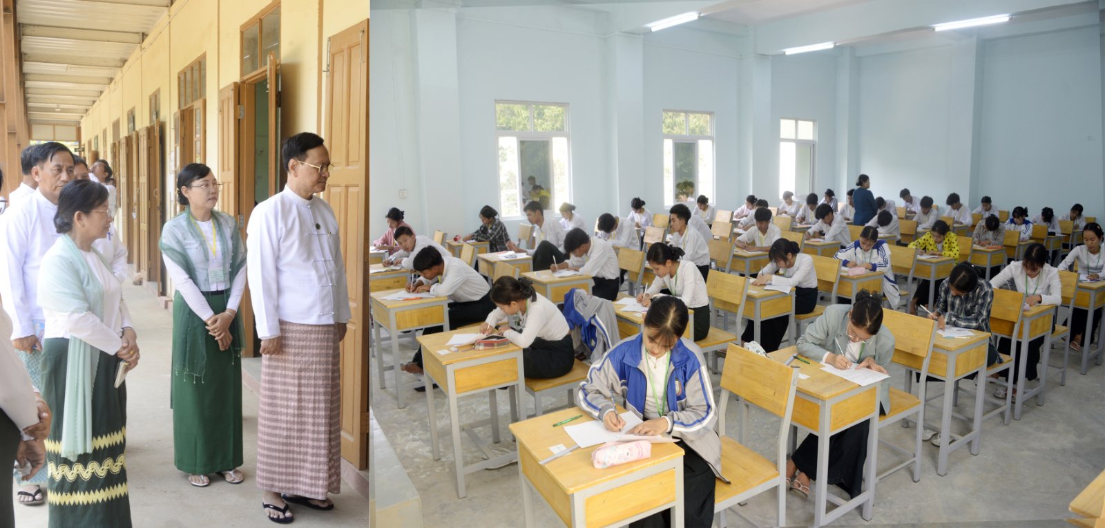 ယင်းနောက် ဒုတိယဝန်ကြီးသည် မိတ္ထီလာမြို့ အမှတ်(၃) အခြေခံပညာအထက်တန်းကျောင်း၊ အမှတ်(၄)အခြေခံပညာအထက်တန်းကျောင်းနှင့် အမှတ်(၅)အခြေခံပညာအထက်တန်းကျောင်း (ရှမ်းတဲ) စာစစ်ဌာနများ၌ ကျောင်းသား ကျောင်းသူများ တက္ကသိုလ်ဝင်စာမေးပွဲ ပဉ္စမနေ့ ရူပဗေဒနှင့် သမိုင်းဘာသာရပ်ကို စိတ်အေးချမ်းစွာ ဖြေဆိုနေမှုကို လှည့်လည်ကြည့်ရှုအားပေးပြီး ကျောင်း၀င်းအတွင်း စာသင်ဆောင်တည်ဆောက်ရေးလုပ်ငန်း ဆောင်ရွက်ပြီးစီးမှုအခြေအနေများကို ကြည့်ရှုခဲ့ကြောင်းသိရသည်။