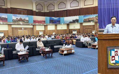 ပညာရေးဝန်ကြီးဌာန ဒုတိယဝန်ကြီး ဒေါက်တာဇော်မြင့်သည် တာဝန်ရှိသူများနှင့်အတူ ယနေ့နံနက်ပိုင်းတွင် မန္တလေးမြို့လမ်း ၈၀ နှင့် ၃၅ လမ်းထောင့်ရှိ ပညာရေးစီမံအုပ်ချုပ်မှုသင်တန်း ကျောင်း(မန္တလေး)ကို ကြည့်ရှုစစ်ဆေးသည်။