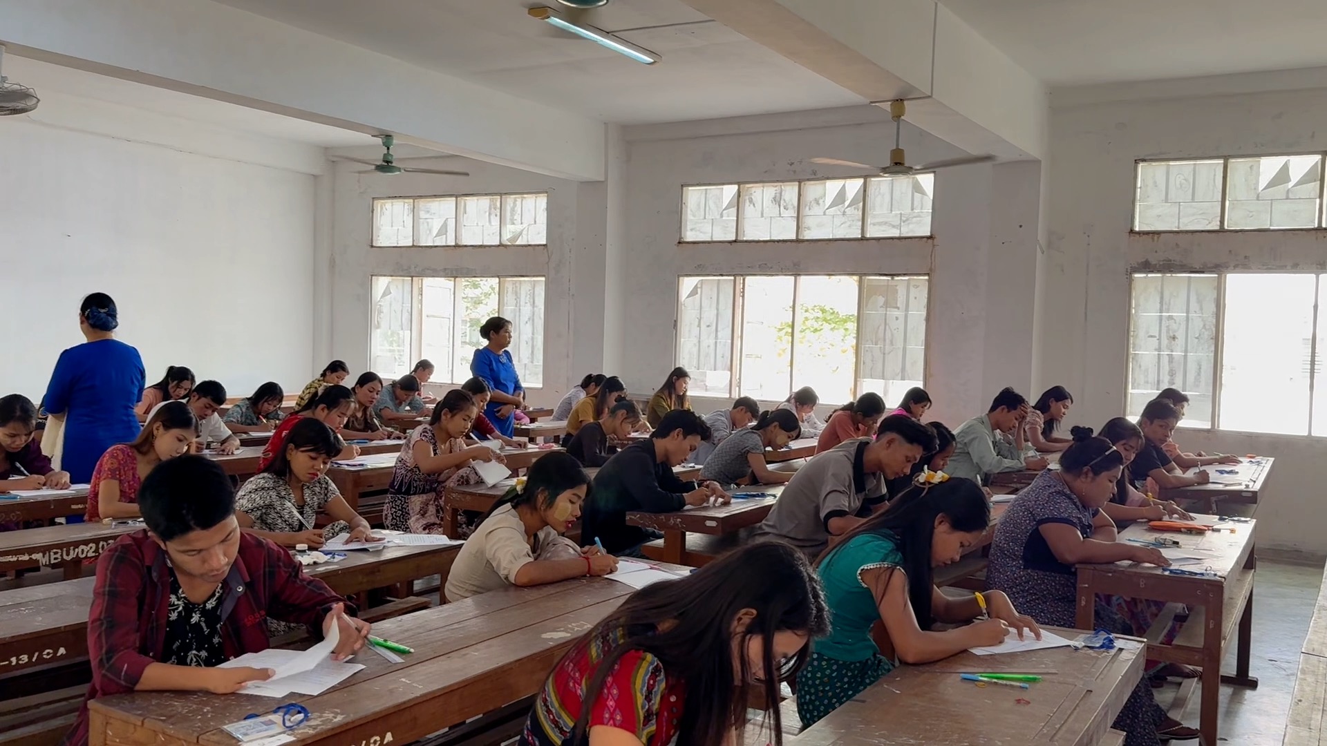 ပညာရေးဝန်ကြီးဌာန ဒုတိယဝန်ကြီး ဒေါက်တာဇော်မြင့်သည် တာဝန်ရှိသူများနှင့်အတူ ယမန်နေ့နံနက်ပိုင်းကဧရာဝတီတိုင်းဒေသကြီး ညောင်တုန်းမြို့ရှိအမှတ်(၁)အခြေခံပညာ အထက်တန်းကျောင်းနှင့် မအူပင်မြို့ရှိအမှတ်(၁)အခြေခံပညာအထက်တန်းကျောင်းများရှိ စာစစ်ဌာနများတွင် ကျောင်းသား ကျောင်းသူများ၂၀၂၅ ခုနှစ် တက္ကသိုလ်ဝင်စာမေးပွဲ အေးချမ်းစွာဖြေဆိုနေမှုကိုလှည့်လည်ကြည့်ရှုအားပေးခဲ့သည်။