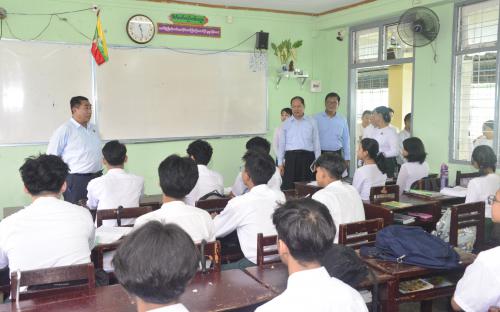 ပညာရေးဝန်ကြီးဌာန ဒုတိယဝန်ကြီး ဦးနေမျိုးလှိုင်သည် တာဝန်ရှိသူများနှင့်အတူ ယနေ့ နံနက်ပိုင်းတွင် ကမာရွတ်မြို့နယ် လေ့ကျင့်ရေး အထက်တန်းကျောင်းနှင့် အမှတ်(၂) အခြေခံပညာ အထက်တန်းကျောင်းသို့ ရောက်ရှိရာ ဆရာ ဆရာမများ၊ ကျောင်းသား ကျောင်းသူများ ပညာသင်ကြားသင်ယူနေမှုများကို လှည့်လည်ကြည့်ရှုစစ်ဆေးပြီး ကျောင်းဥပဓိရုပ်ကောင်းမွန်ရေး၊ ကျောင်းစာကြည့်တိုက်များအတွင်း အကျိုးပြုစာပေကောင်းများ၊ သုတရသစာအုပ်ကောင်းများထားရှိရေး၊ ကျောင်းသား ကျောင်းသူများ၏ မျိုးချစ်စိတ်၊ နိုင်ငံချစ်စိတ်များ ရှင်သန်ထက်မြက်စေရေး၊ စည်းကမ်းကောင်းမွန်ရေးတို့အတွက် ဆောင်ရွက်ကြရန်နှင့် လိုအပ်သည်များကို ဖြည့်ဆည်းဆောင်ရွက်ပေးသည်။