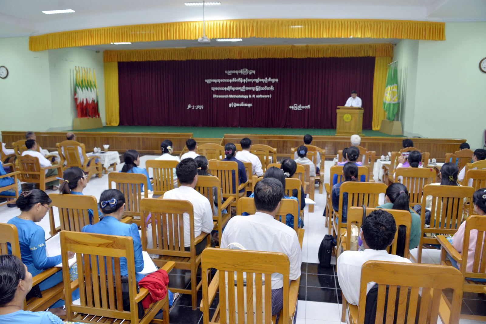 ထို့နောက် သင်တန်းကို အစီအစဉ်အတိုင်း ဆက်လက်ကျင်းပရာ ပညာရေးဝန်ကြီးဌာန အမြဲတမ်းအတွင်းဝန် ‌ဒေါက်တာစိုးဝင်းက သုတေသနနည်းစနစ်(Research Methodology and R Software) ခေါင်းစဉ်ဖြင့် ဆွေးနွေးပို့ချသည်။