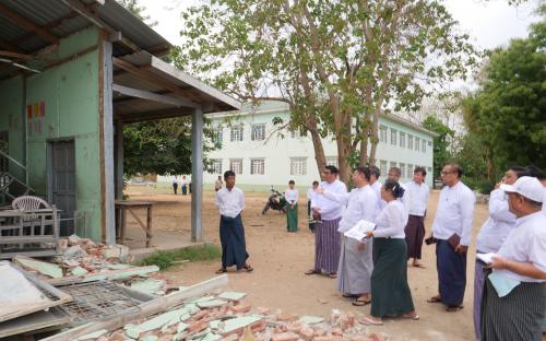 ထိုသို့ကြည့်ရှုစစ်ဆေးစဉ် ပြည်ထောင်စုဝန်ကြီးက လာမည့်ပညာသင်ကာလအမီ ပြင်ဆင် ရမည့်ကျောင်းများကို ‌အဆောက်အဦစစ်ဆေးရေးအဖွဲ့များ၏မှတ်ချက်ဖြင့် အမြန်ဆုံး ပြင်ဆင် ဆောင်ရွက်သွားမည်ဖြစ်ပါကြောင်း၊ ဆရာဆရာမများ၏ လိုအပ်ချက်များကိုလည်း ဖြည့်ဆည်း ဆောင်ရွက်ပေးသွားမည်ဖြစ်ပါကြောင်း၊ စာသင်ဆောင်နှင့် ရေမီးရရှိရေး၊ သန့်စင်ခန်း လိုအပ်ချက် ပြည်မီရေးတို့ကို ဖြည့်ဆည်းပေးမည်ဖြစ်ကြောင်းစသည်ဖြင့် မှာကြားသည်။ ယင်းနောက် အဆိုပါ ကျောင်းရှိ ငလျင်ဒဏ်သင့် ပညာရေးဝန်ထမ်းမိသားစုများအား ပြည်ထောင်စုဝန်ကြီး၊ ဒုတိယ ဝန်ကြီး၊ ညွှန်ကြားရေးမှူးချုပ်များနှင့် တာဝန်ရှိသူများက  ရေသန့်ကတ်များ၊ ခေါက်ဆွဲခြောက်ထုပ် များကို ပေးအပ်ခဲ့ကြောင်း သိရသည်။