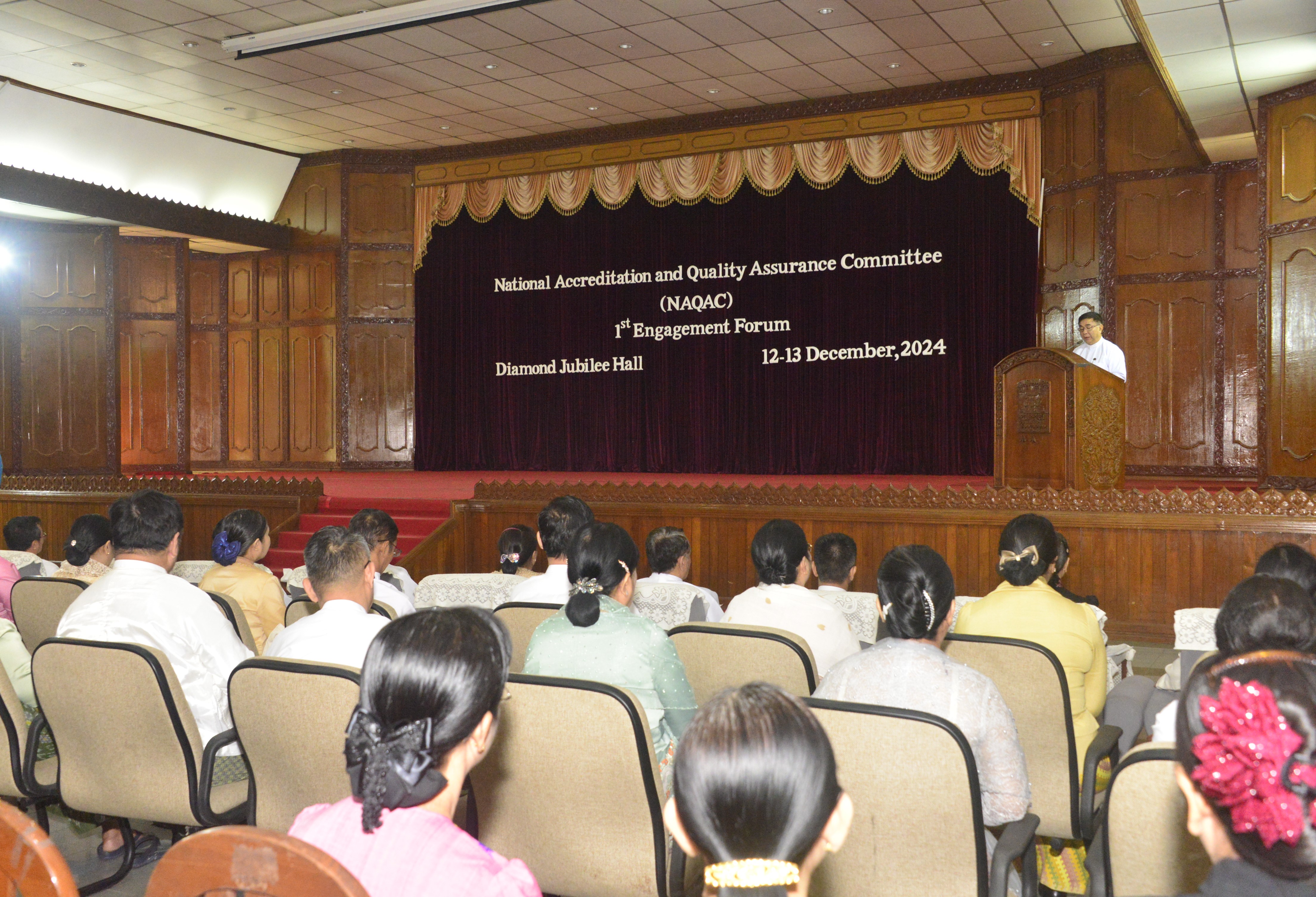 နှစ်ရက်တာကျင်းပမည့် National Accreditation and Quality Assurance Committee (NAQAC) 1st Engagement Forum တွင် သက်ဆိုင်ရာ session အလိုက် NAQAC အဖွဲ့ဝင် ပါမောက္ခချုပ်များ က NAQAC ၏ လုပ်ငန်းစဉ်များနှင့် ပတ်သက်ပြီး ရှင်းလင်းပြောကြားခြင်း၊ QA ကျွမ်းကျင်သူများမှ expert talks တွင် တက္ကသိုလ်များ၏ အတွင်းအရည်အသွေးအာမခံမှုစနစ် (Internal Quality System) ကို လက်တွေ့အကောင်အထည်ဖော်ဆောင်ရွက်ရာတွင် အရေးကြီးသည့် project management နှင့်ပတ်သက်ပြီး ဆွေးနွေးခြင်းများပါဝင်ပြီး တက္ကသိုလ်အသီးသီးမှ တက်ရောက်လာသော ပါမောက္ခချုပ်များ၊ ဆရာ ဆရာမများအကြား အချင်းချင်းအတွေ့အကြုံများ မျှဝေပြီး တက္ကသိုလ်များအကြား အရည်အသွေးအာမခံမှုဆိုင်ရာ ပူးပေါင်းဆောင်ရွက်မှုကို မြှင့်တင်နိုင်မည်ဖြစ်ကြောင်း ပြောကြားသည်။
