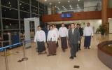 ထိုင်းနိုင်ငံမှ အိမ်ရှင်အဖြစ်ကျင်းပသည့် (၁၃) ကြိမ်မြောက် အာဆီယံပညာရေးဝန်ကြီးများ အစည်းအဝေးတက်ရောက်မည့် ပြည်ထောင်စုဝန်ကြီး ဒေါက်တာညွန့်ဖေ ဦးဆောင်သော မြန်မာကိုယ်စားလှယ်အဖွဲ့သည် ယမန်နေ့ညနေပိုင်းတွင် ခေတ္တတည်းခိုသည့် ထိုင်းနိုင်ငံ ဘူရီယမ်မြို့ရှိ Modena ဟိုတယ်မှတစ်ဆင့် အာဆီယံအဖွဲ့ဝင်နိုင်ငံများမှ ပညာရေးဝန်ကြီးများနှင့် ကိုယ်စားလှယ်များ၊ ဧည့်သည်တော်များနှင့်အတူ ဘူရီယမ်မြို့ရှိ Khao Phnom Rung ရှေးဟောင်းဒေသနှင့် Prasat Meaung Tam ရှေးဟောင်းဒေသသို့ သွားရောက်လေ့လာပြီး ထိုင်းနိုင်ငံပညာရေးဝန်ကြီးက တည်ခင်းဧည့်ခံသည့် ဂုဏ်ပြုညစာစားပွဲသို့ တက်ရောက်သည်။