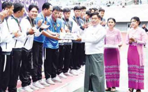 ထို့နောက် နိုင်ငံတော်စီမံအုပ်ချုပ်ရေးကောင်စီ ဒုတိယဥက္ကဋ္ဌ ဒုတိယဝန်ကြီးချုပ် ဒုတိယဗိုလ်ချုပ်မှူးကြီးစိုးဝင်းက ပထမဆုရရှိသည့် ပညာရေးဝန်ကြီးဌာန (က)အသင်းကို တံခွန်စိုက်ဆုဖလားနှင့် ဂုဏ်ပြုဆုငွေကျပ် သိန်း ၁၀၀ ကို ပေးအပ်ချီးမြှင့်သည်။